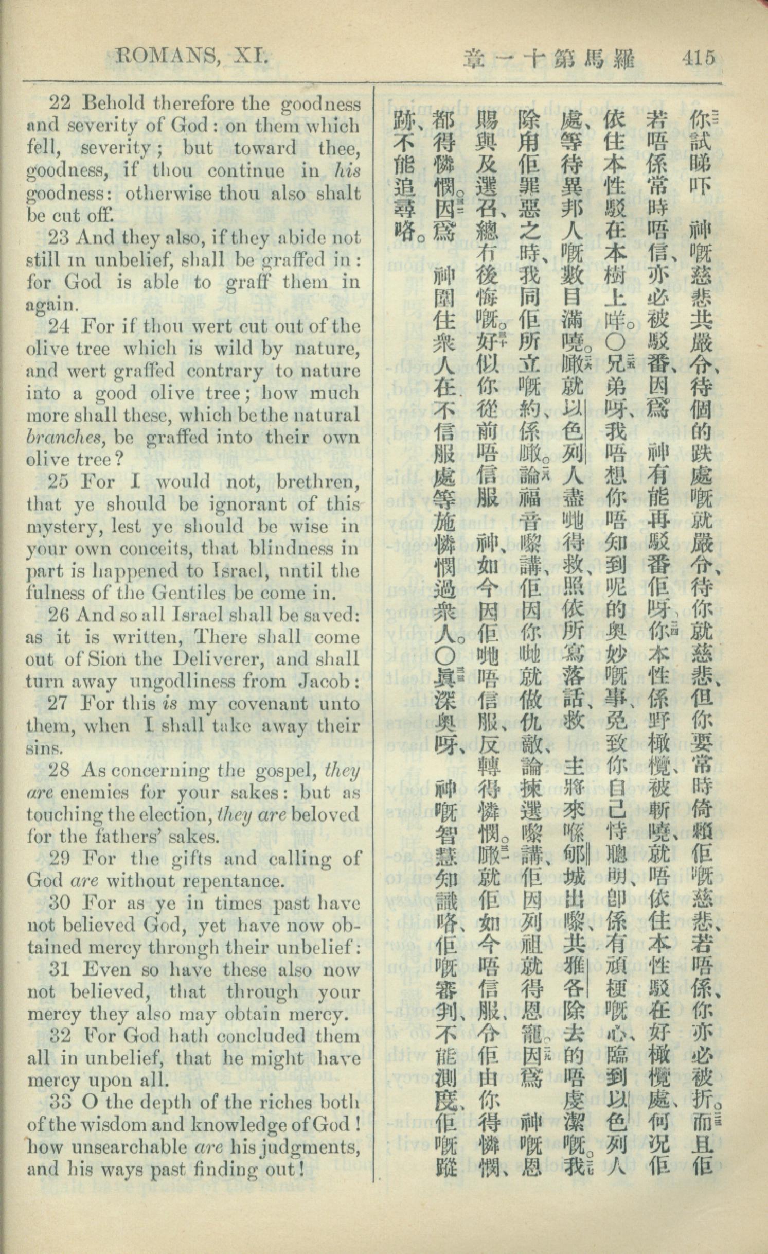 1909年中西字新約全書 羅馬書 11 章 22 節到 11 章 33 節