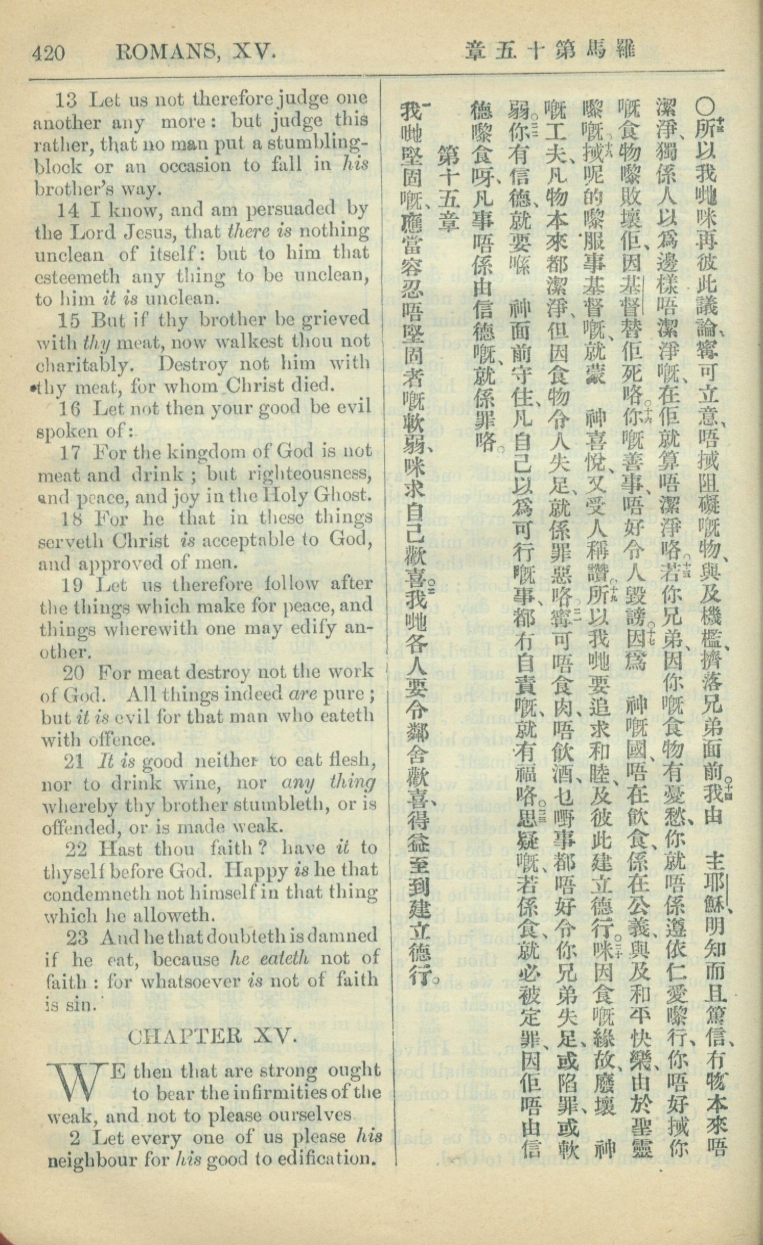 1909年中西字新約全書 羅馬書 14 章 13 節到 15 章 2 節