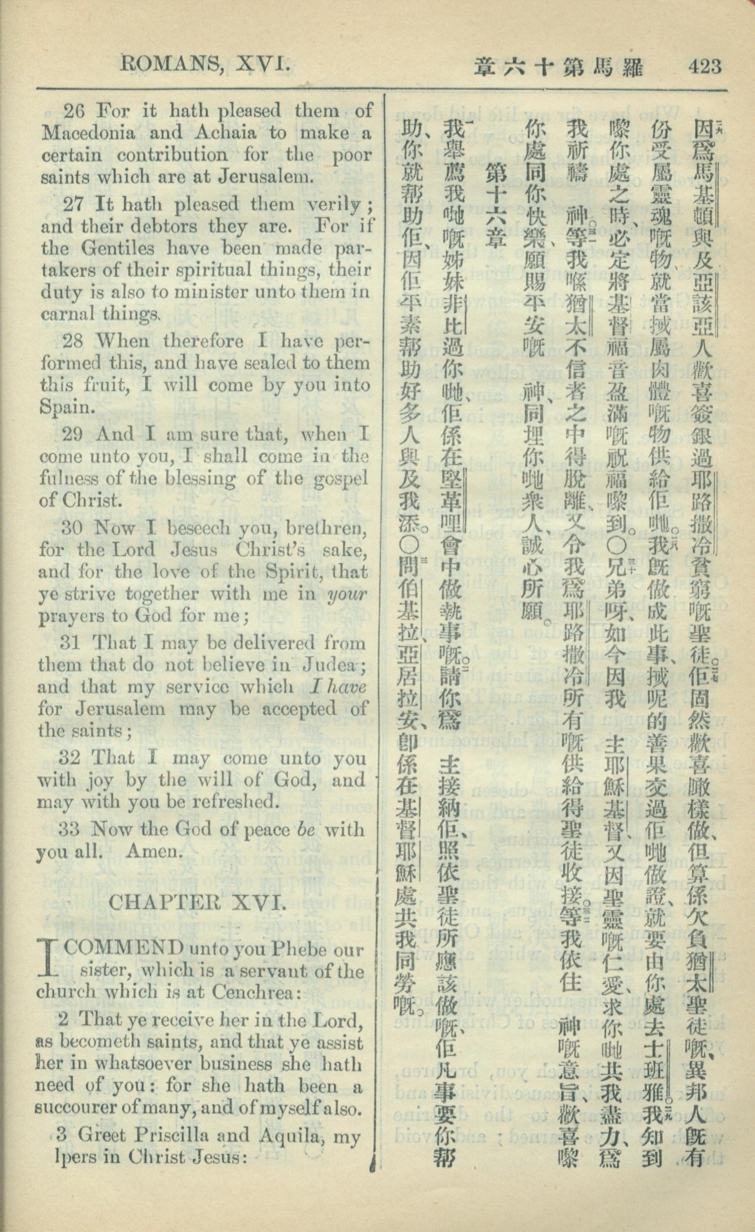 1909年中西字新約全書 羅馬書 15 章 26 節到 16 章 3 節