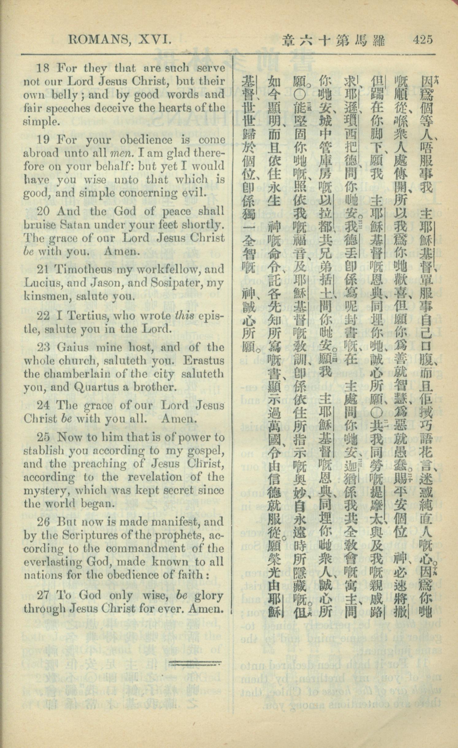 1909年中西字新約全書 羅馬書 16 章 18 節到 16 章 27 節