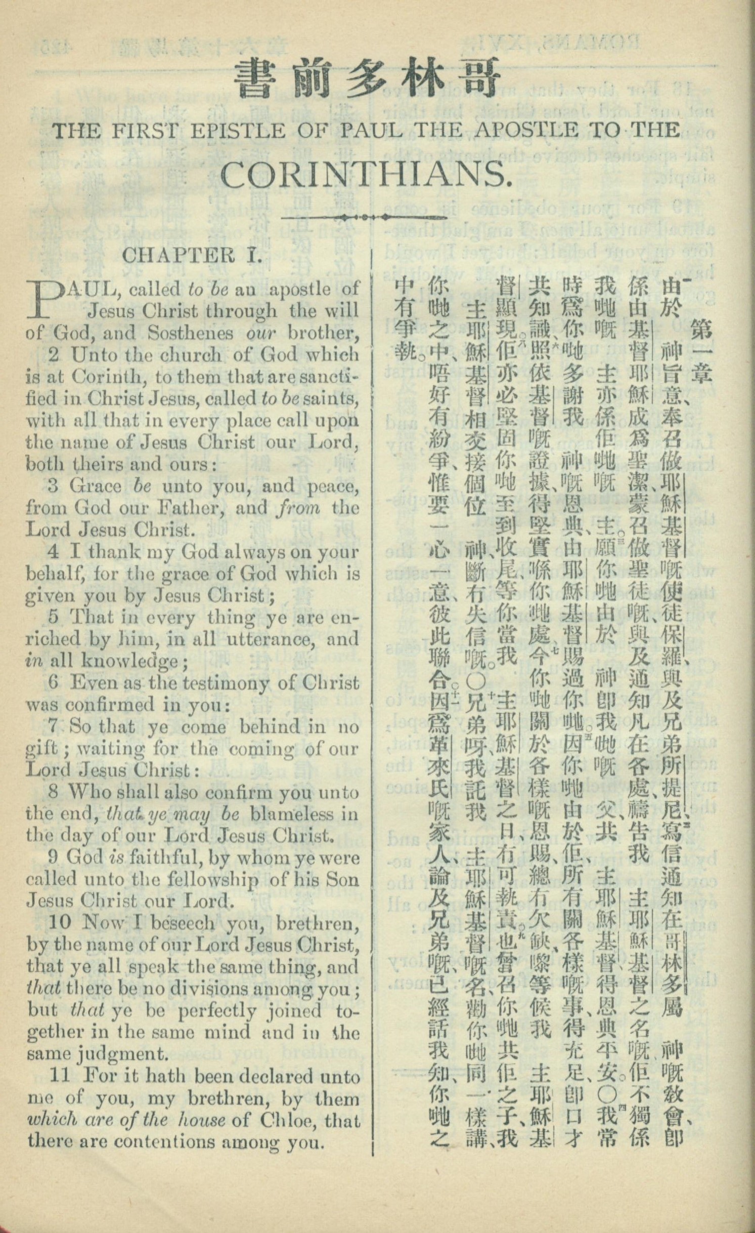 1909年中西字新約全書 哥林多前書 1 章 1 節到 1 章 11 節