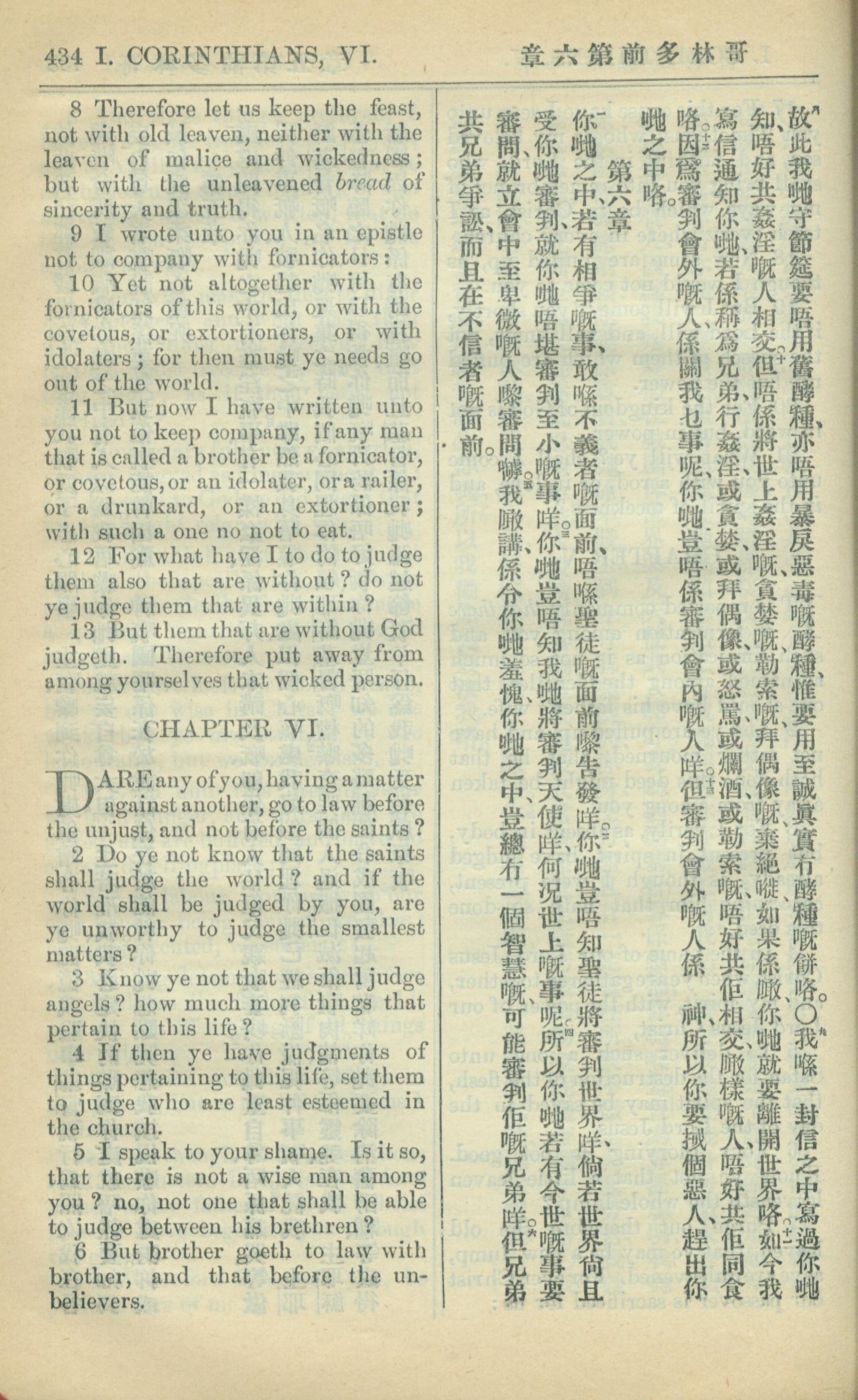 1909年中西字新約全書 哥林多前書 5 章 8 節到 6 章 6 節