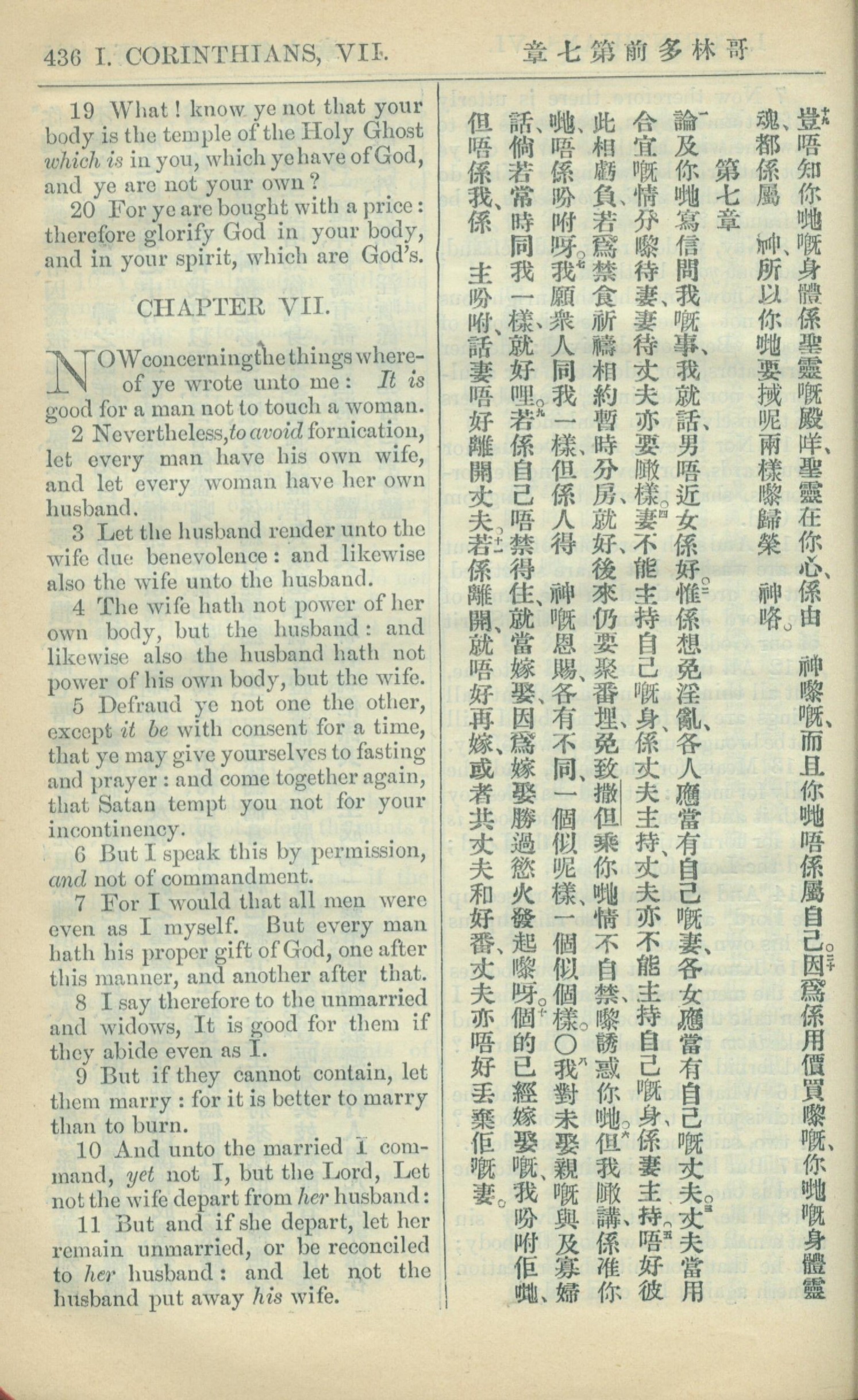 1909年中西字新約全書 哥林多前書 6 章 19 節到 7 章 11 節