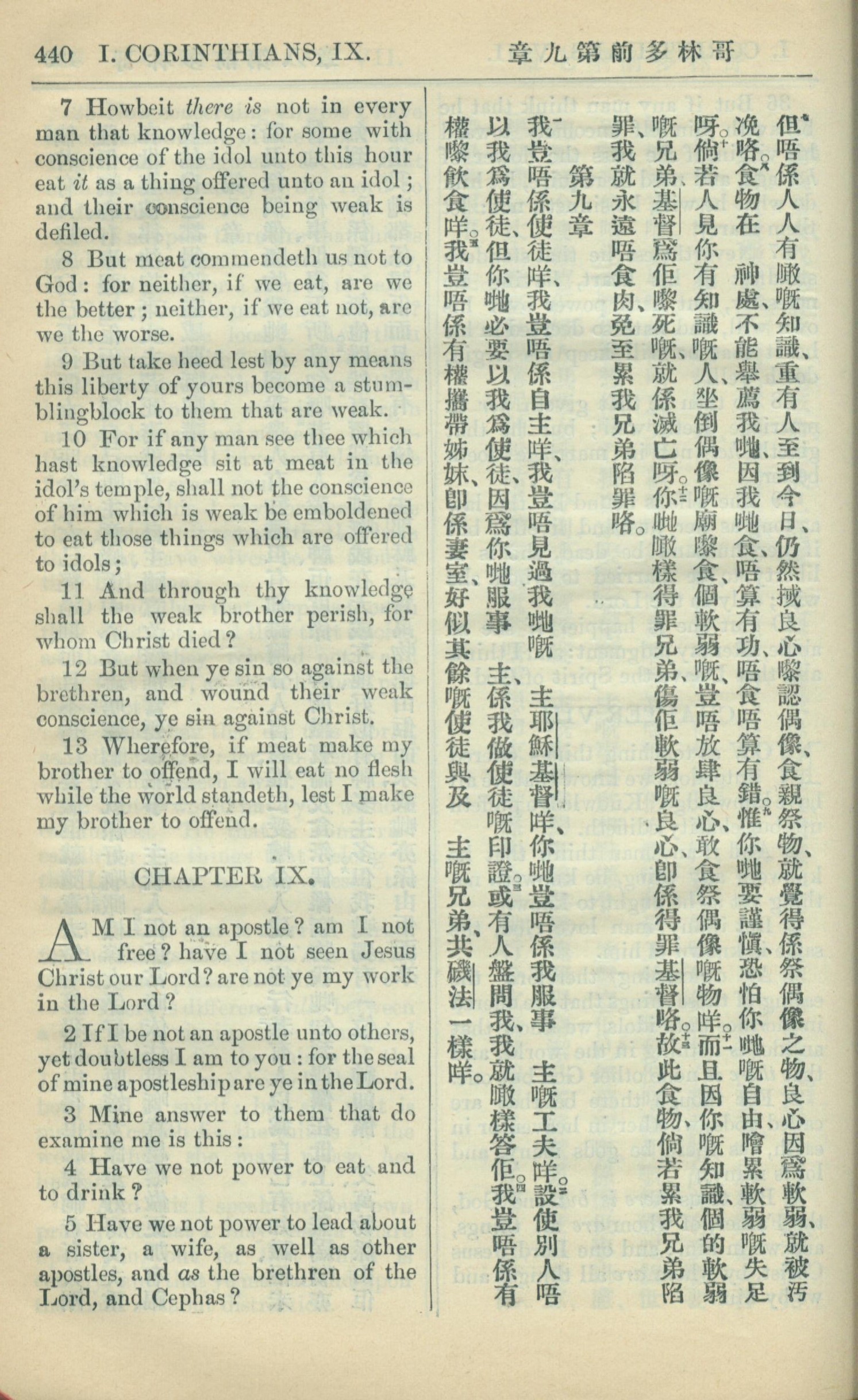 1909年中西字新約全書 哥林多前書 8 章 7 節到 9 章 5 節