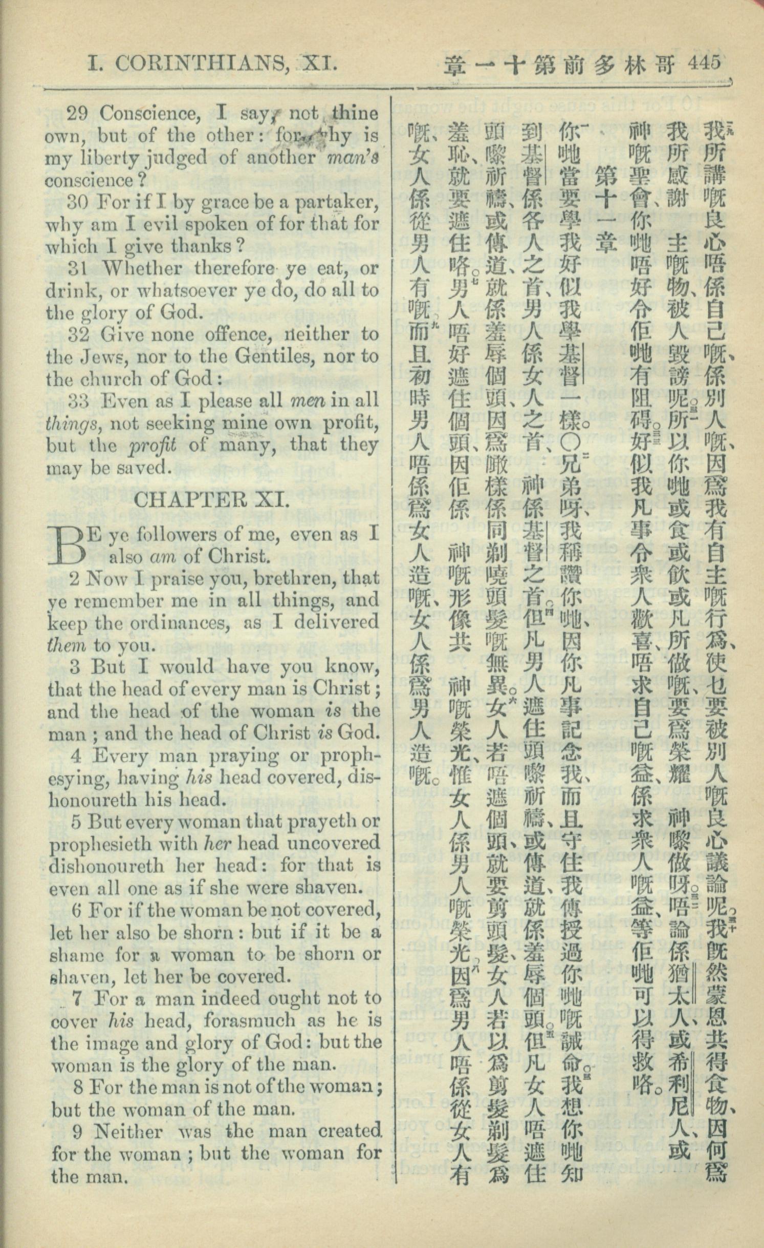 1909年中西字新約全書 哥林多前書 10 章 29 節到 11 章 9 節