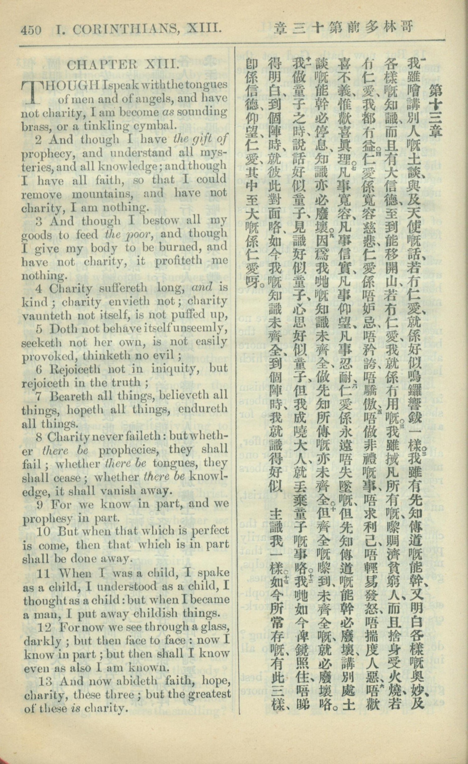 1909年中西字新約全書 哥林多前書 13 章 1 節到 13 章 13 節