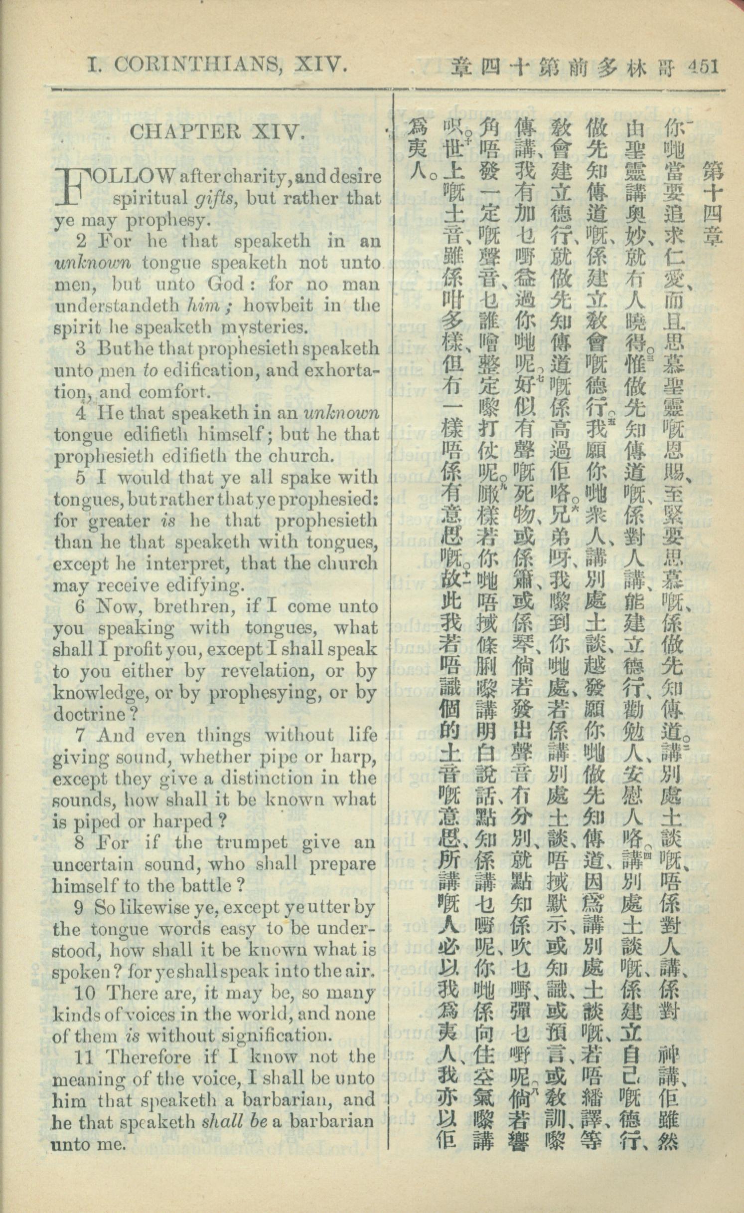 1909年中西字新約全書 哥林多前書 14 章 1 節到 14 章 11 節