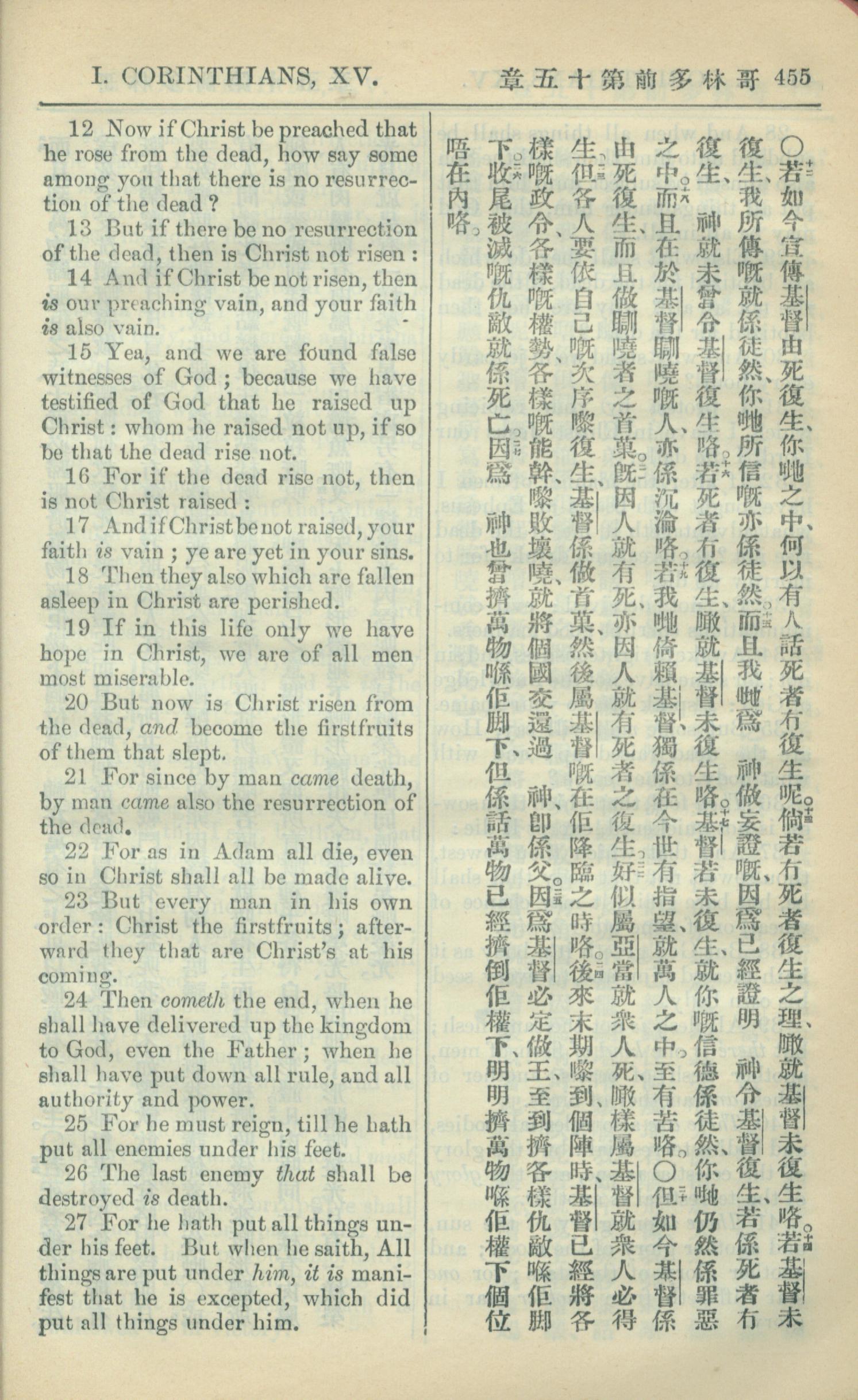 1909年中西字新約全書 哥林多前書 15 章 12 節到 15 章 27 節