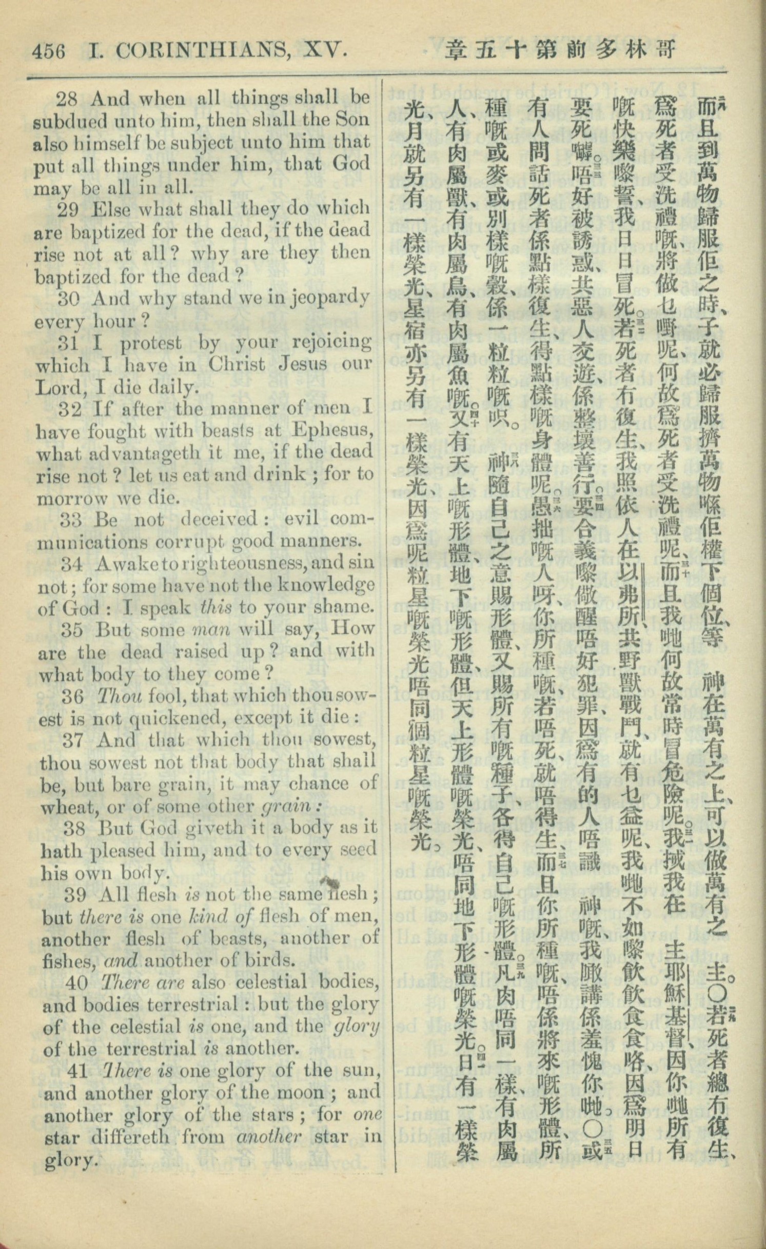 1909年中西字新約全書 哥林多前書 15 章 28 節到 15 章 41 節