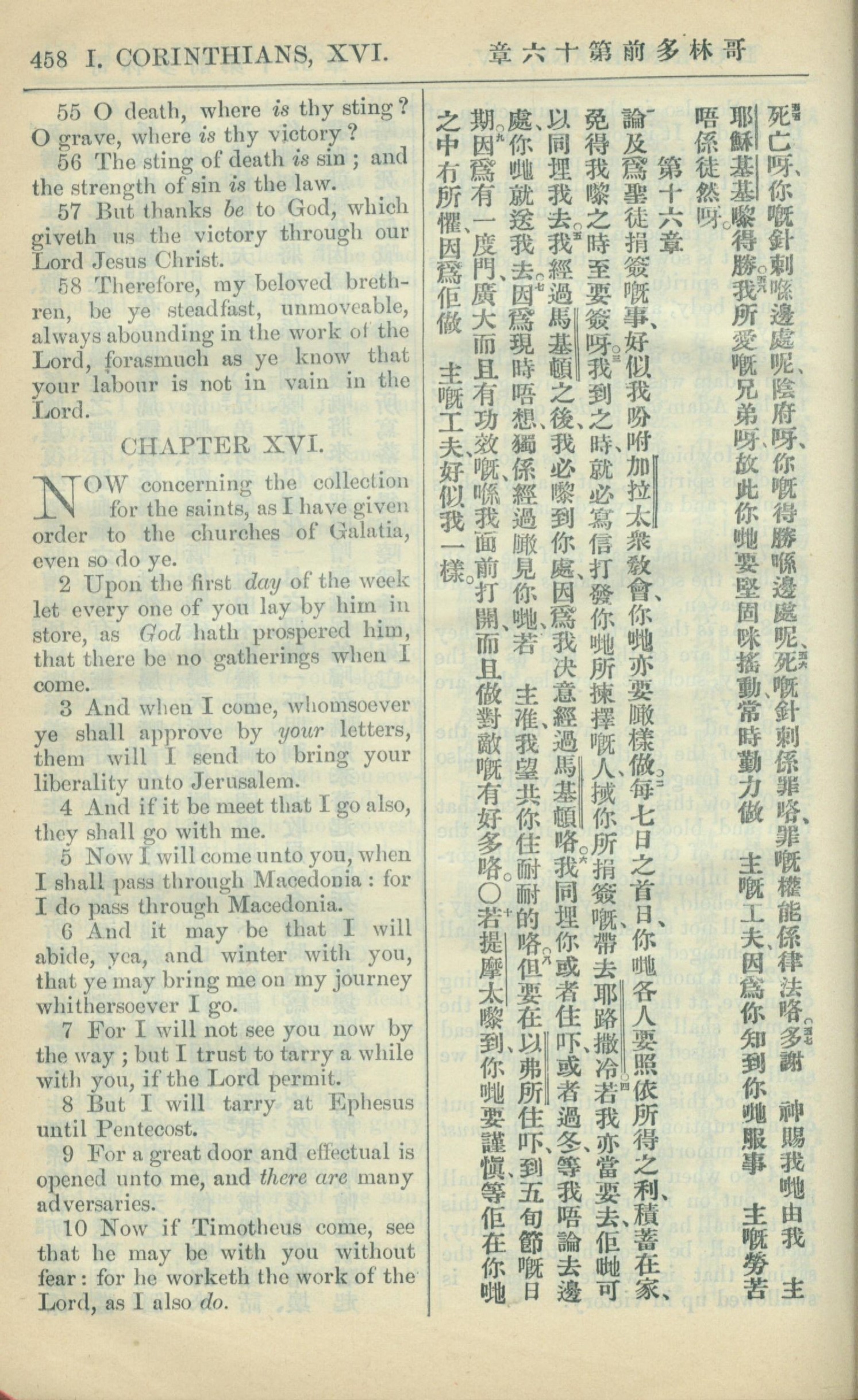 1909年中西字新約全書 哥林多前書 15 章 55 節到 16 章 10 節