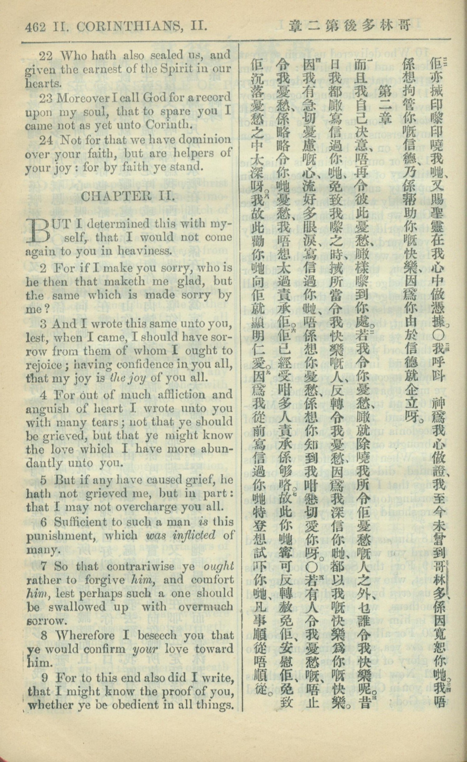 1909年中西字新約全書 哥林多後書 1 章 22 節到 2 章 9 節