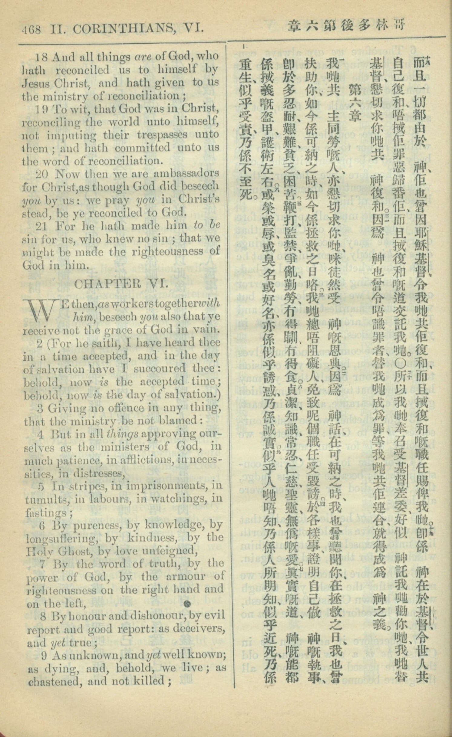 1909年中西字新約全書 哥林多後書 5 章 18 節到 6 章 9 節