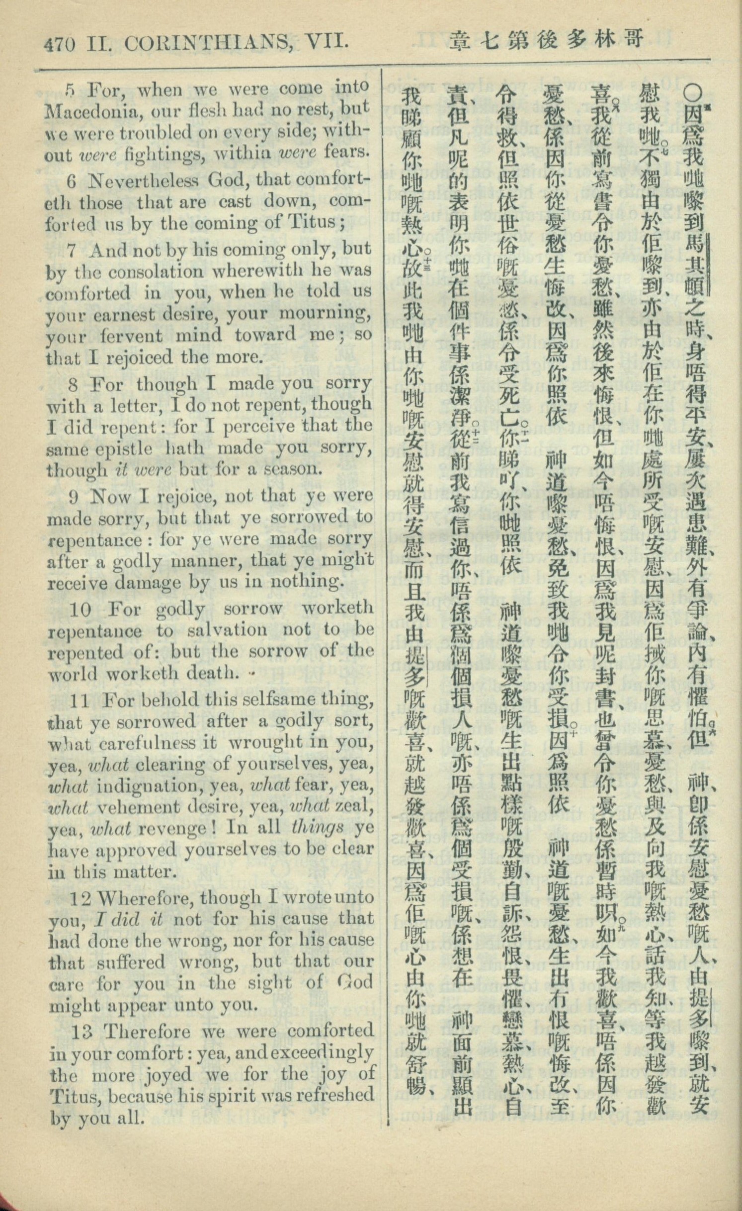 1909年中西字新約全書 哥林多後書 7 章 5 節到 7 章 13 節