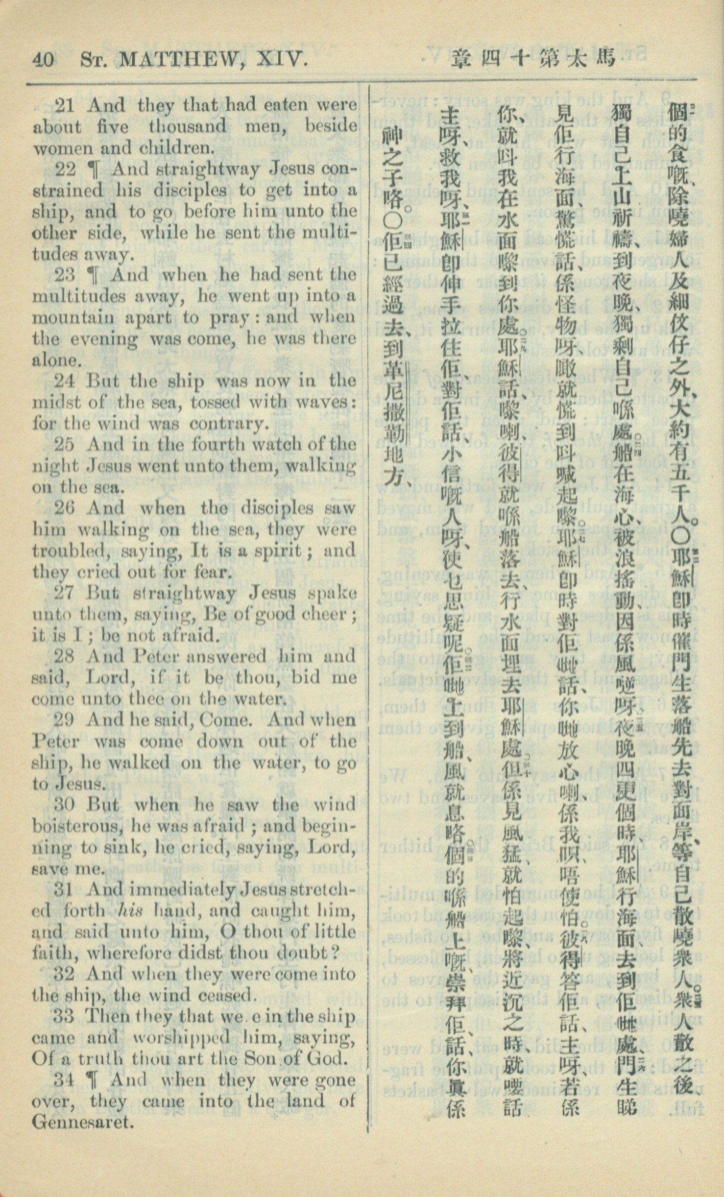 1909年中西字新約全書 馬太福音 14 章 21 節到 14 章 34 節