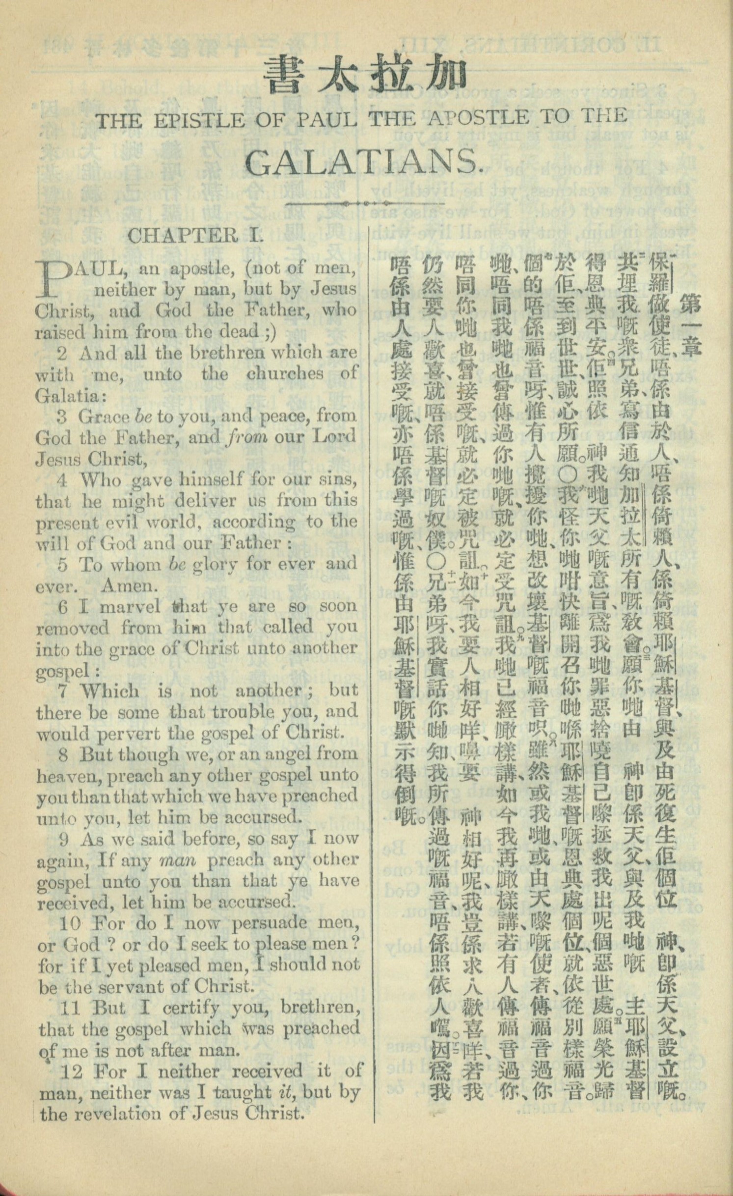 1909年中西字新約全書 加拉太書 1 章 1 節到 1 章 12 節