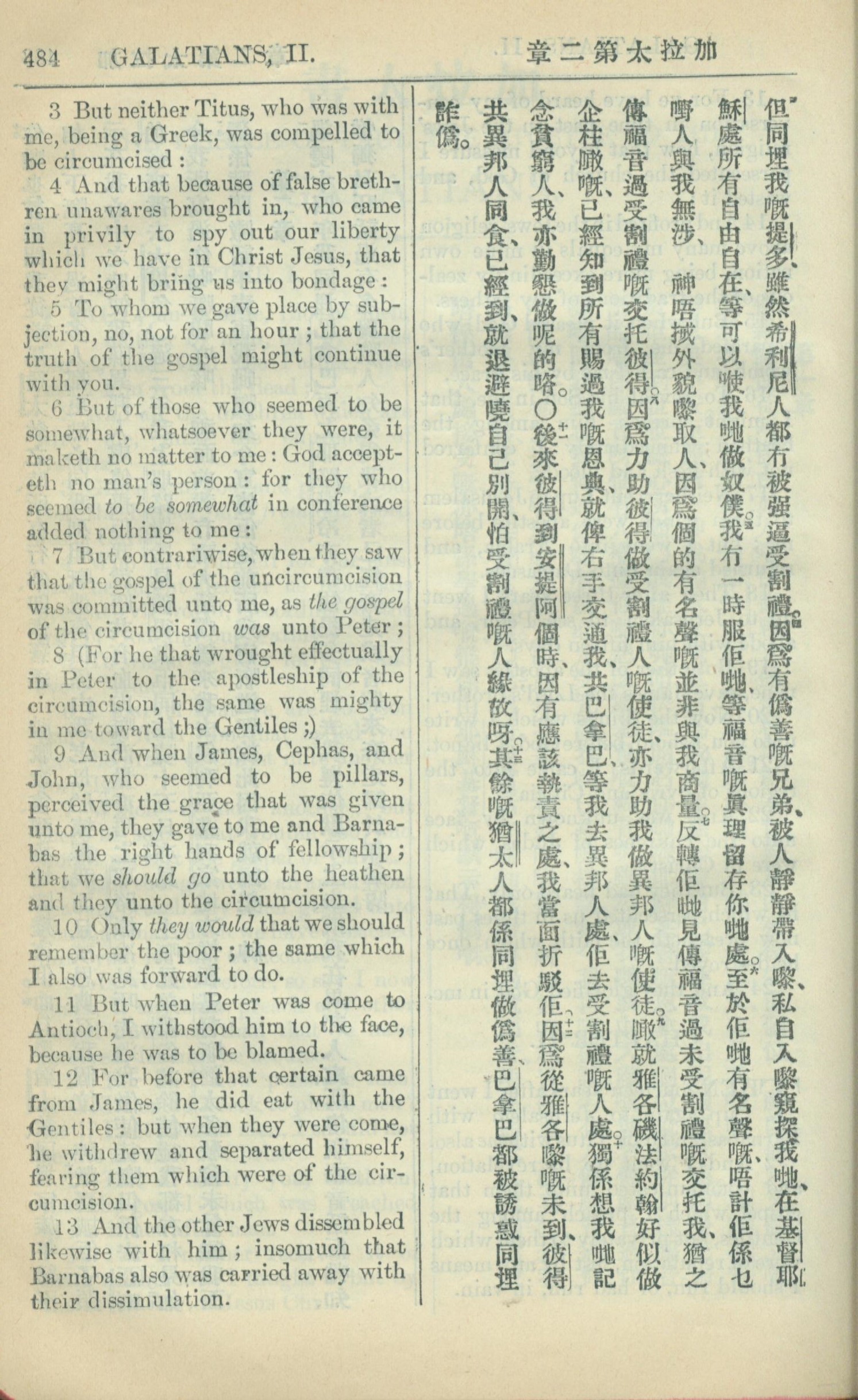 1909年中西字新約全書 加拉太書 2 章 3 節到 2 章 13 節
