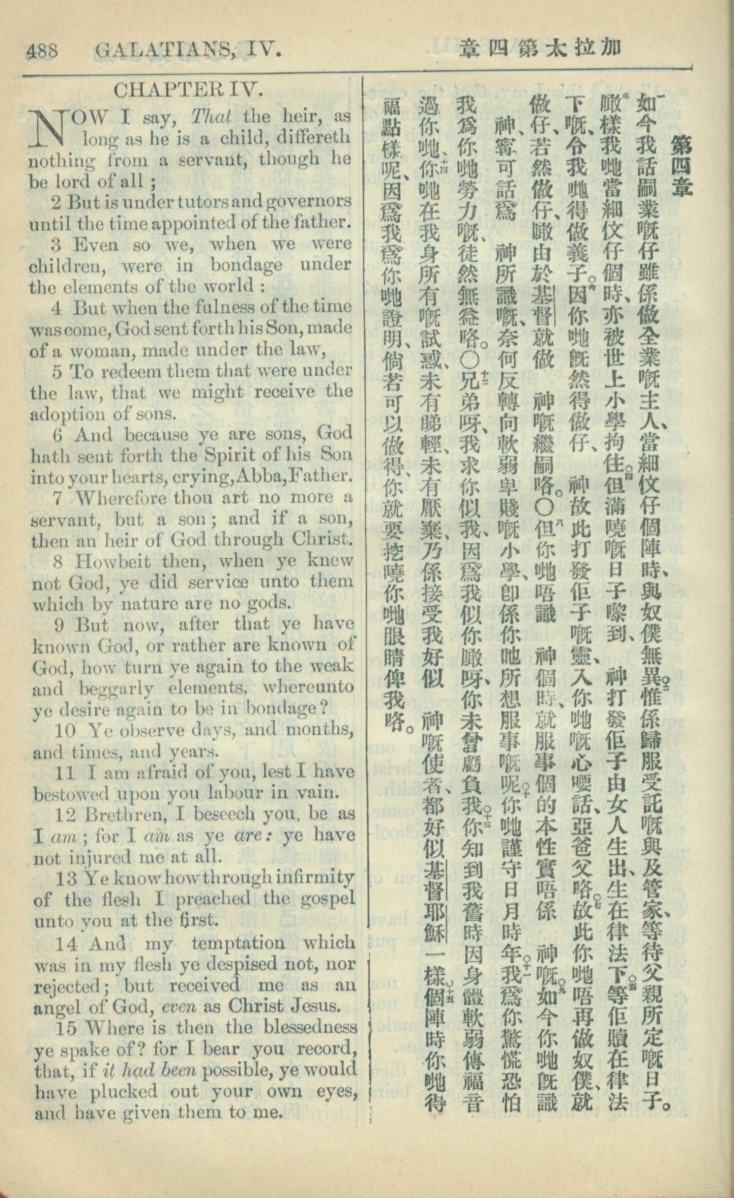 1909年中西字新約全書 加拉太書 4 章 1 節到 4 章 15 節