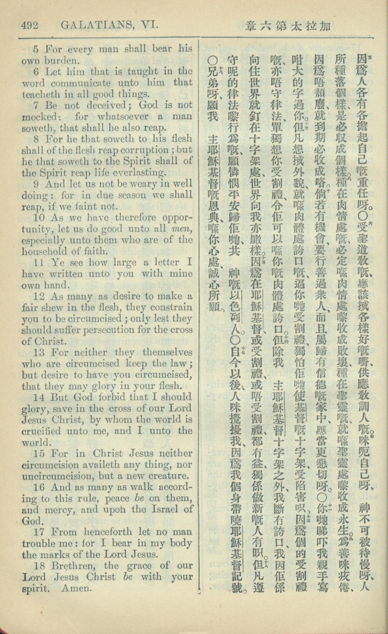 1909年中西字新約全書 加拉太書 6 章 5 節到 6 章 18 節