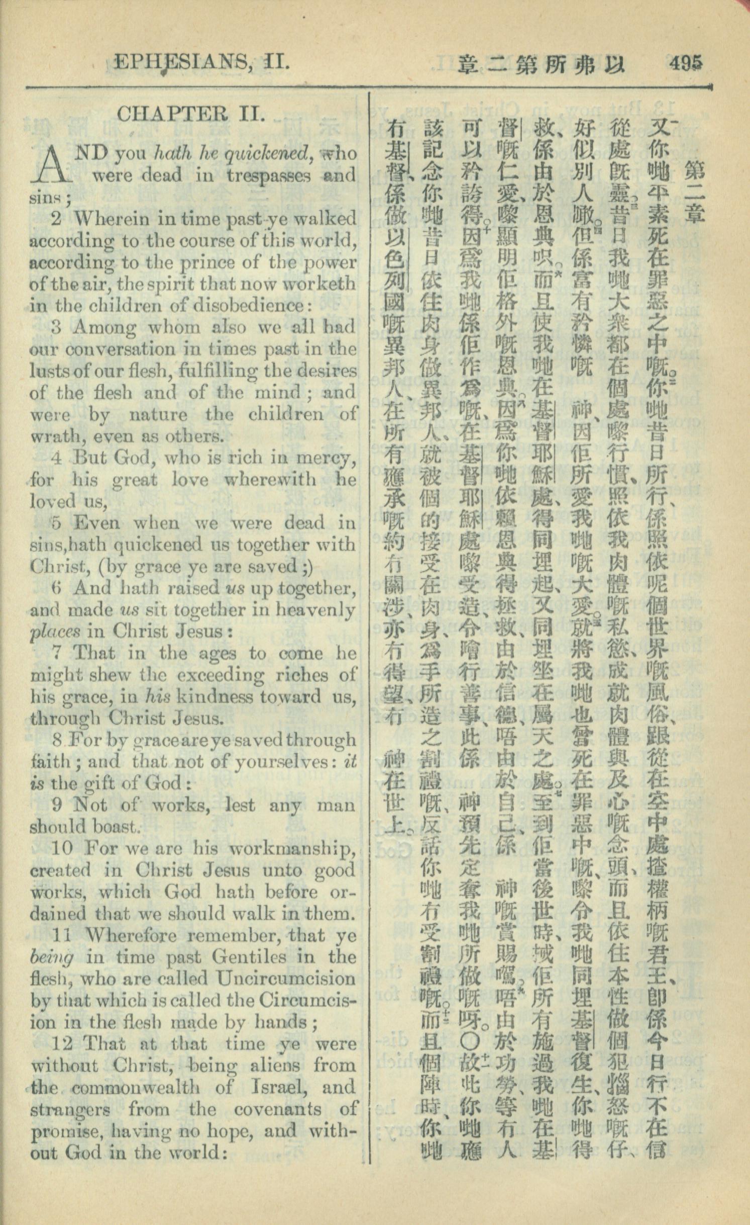 1909年中西字新約全書 以弗所書 2 章 1 節到 2 章 12 節