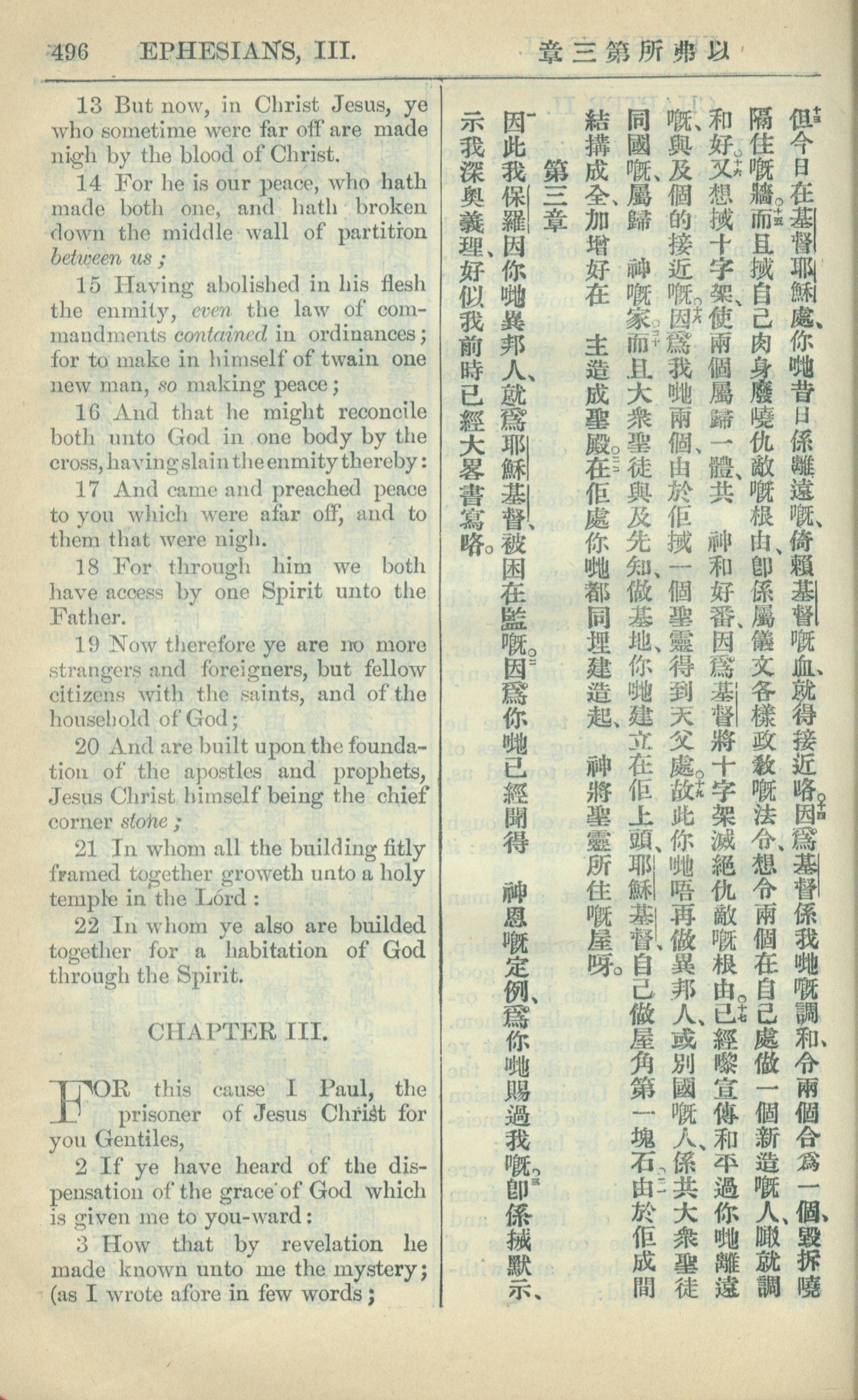 1909年中西字新約全書 以弗所書 2 章 13 節到 3 章 3 節