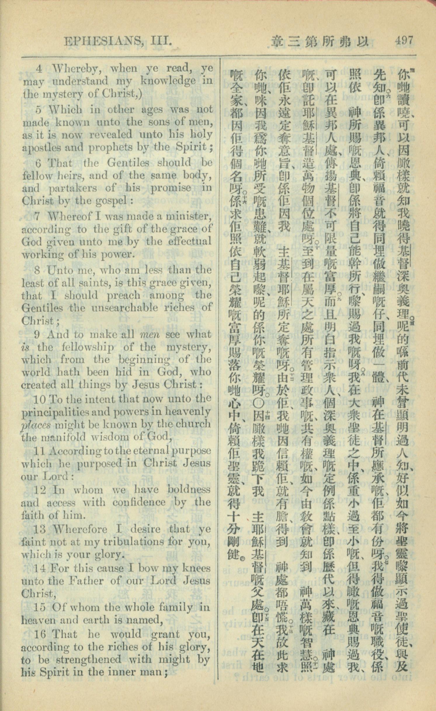 1909年中西字新約全書 以弗所書 3 章 4 節到 3 章 16 節