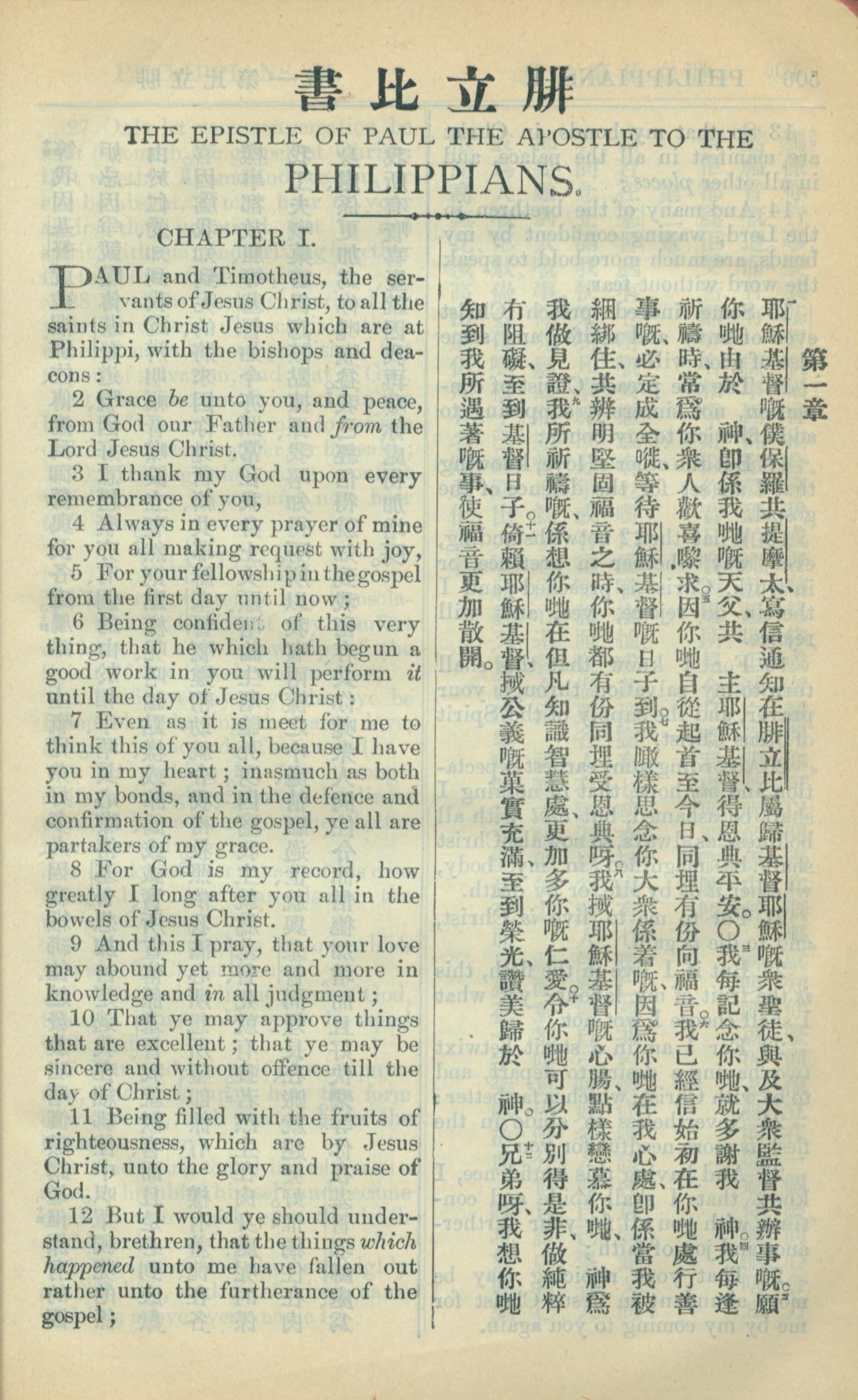 1909年中西字新約全書 腓立比書 1 章 1 節到 1 章 12 節
