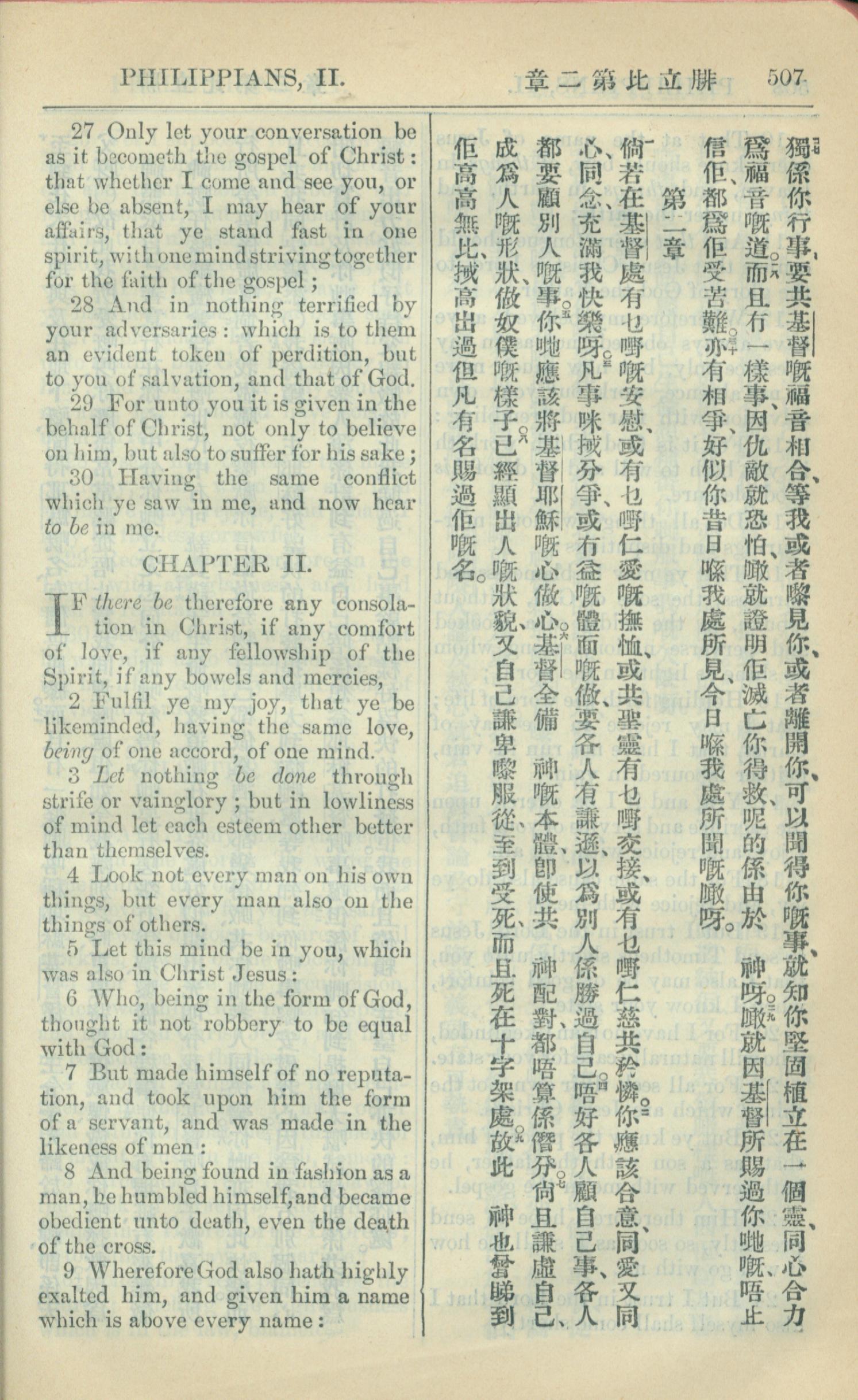 1909年中西字新約全書 腓立比書 1 章 27 節到 2 章 9 節