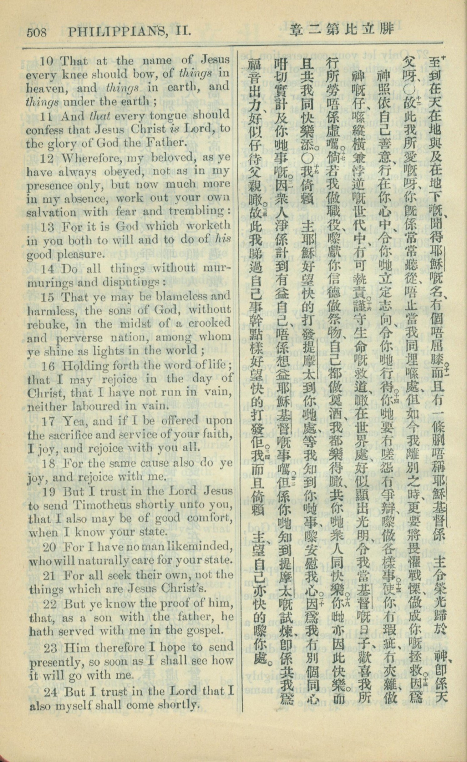 1909年中西字新約全書 腓立比書 2 章 10 節到 2 章 24 節