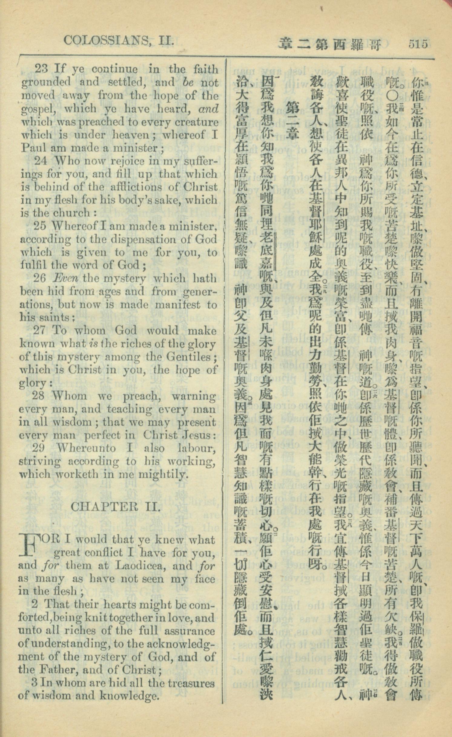 1909年中西字新約全書 歌羅西書 1 章 23 節到 2 章 3 節
