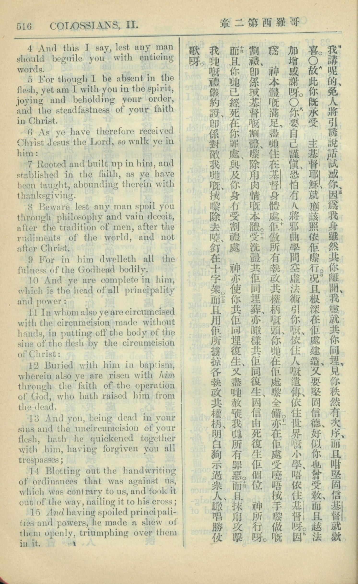1909年中西字新約全書 歌羅西書 2 章 4 節到 2 章 15 節