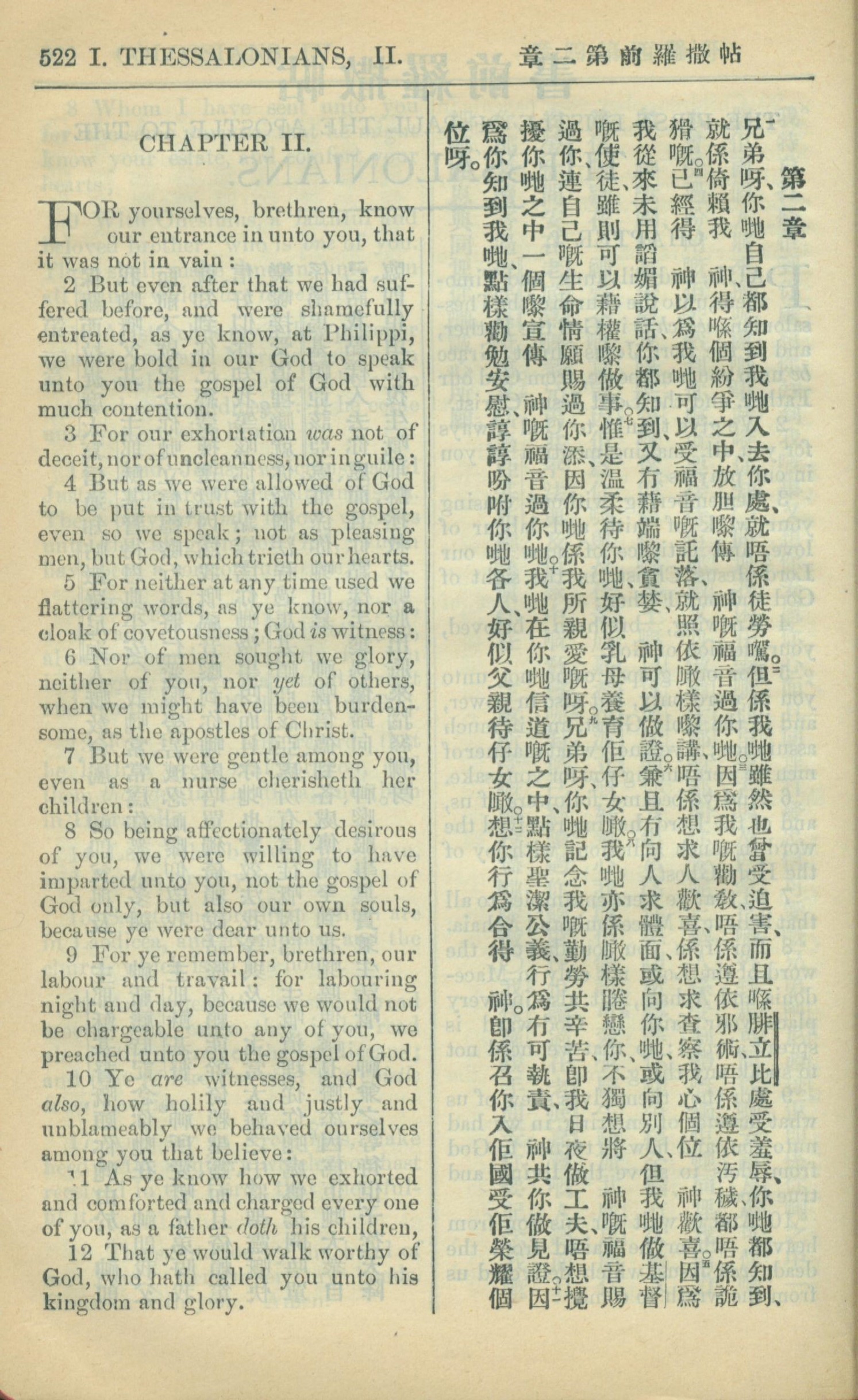 1909年中西字新約全書 帖撒羅尼迦前書 2 章 1 節到 2 章 12 節