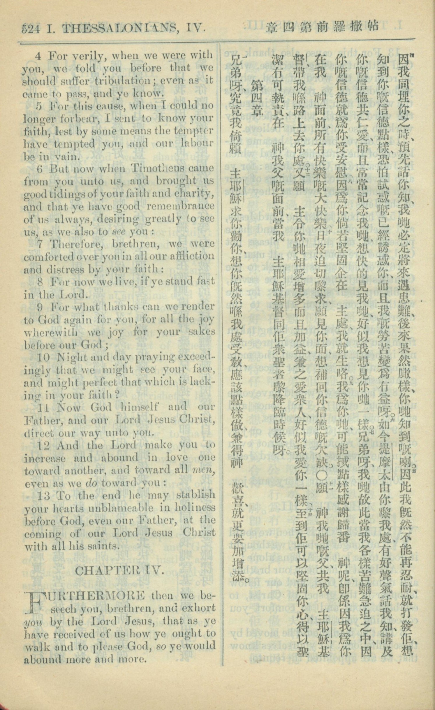 1909年中西字新約全書 帖撒羅尼迦前書 3 章 4 節到 4 章 1 節
