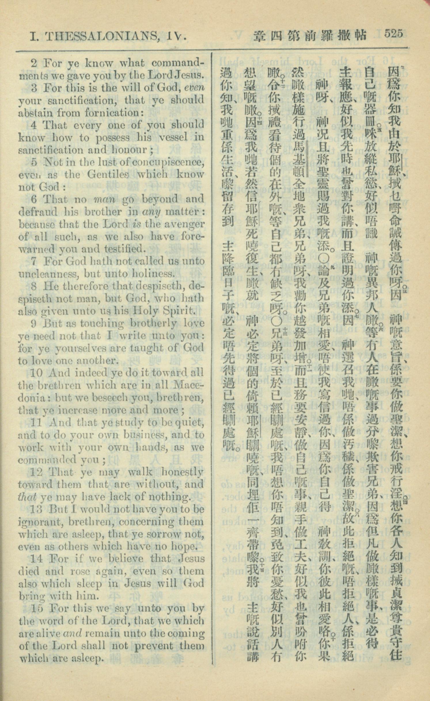 1909年中西字新約全書 帖撒羅尼迦前書 4 章 2 節到 4 章 15 節