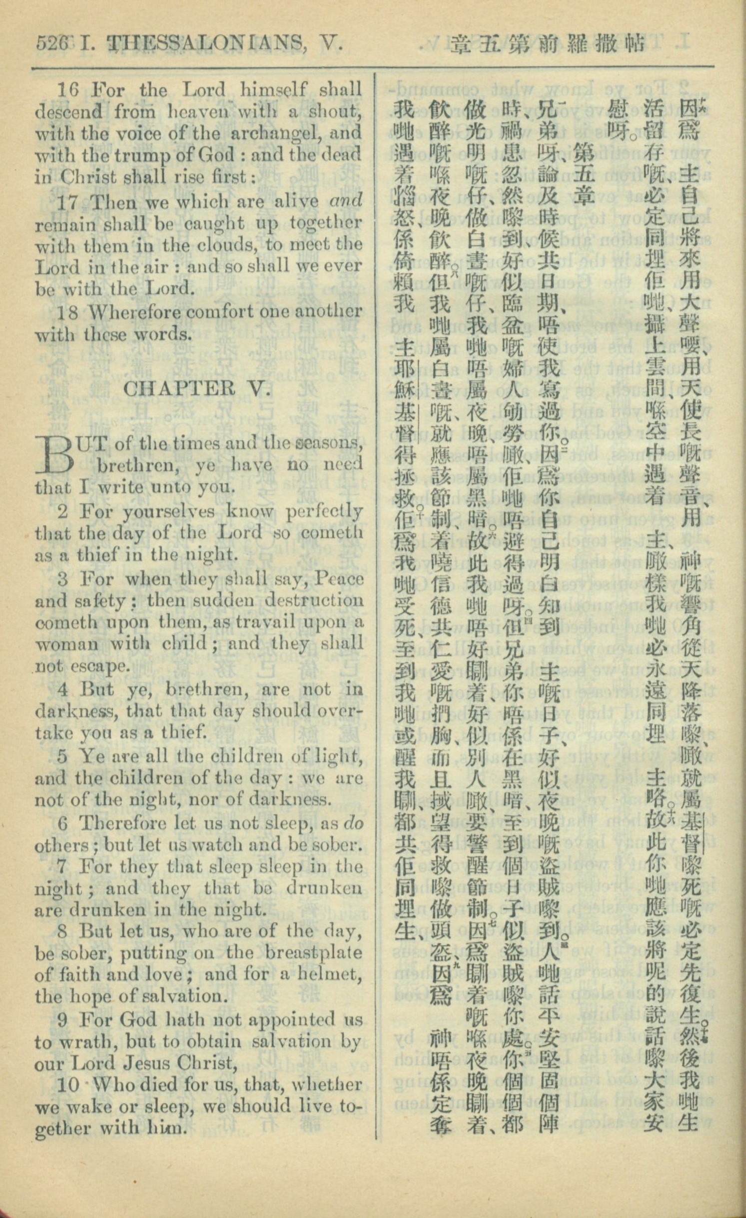 1909年中西字新約全書 帖撒羅尼迦前書 4 章 16 節到 5 章 10 節
