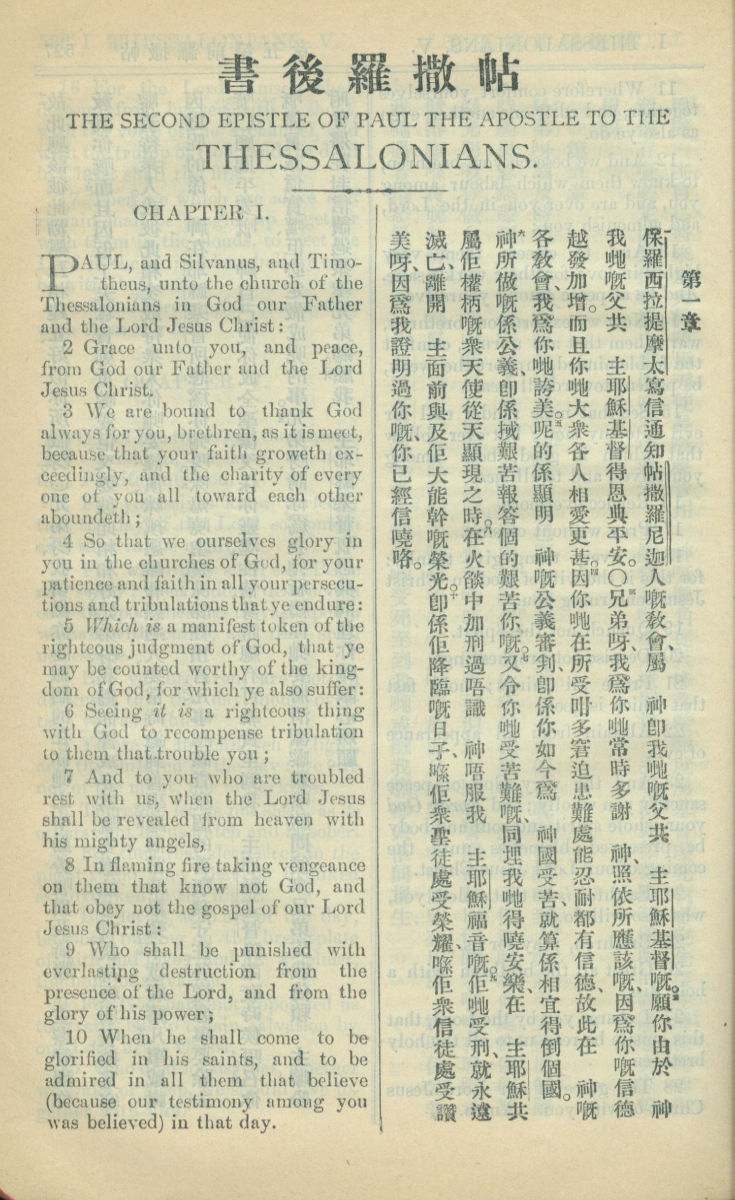 1909年中西字新約全書 帖撒羅尼迦後書 1 章 1 節到 1 章 10 節