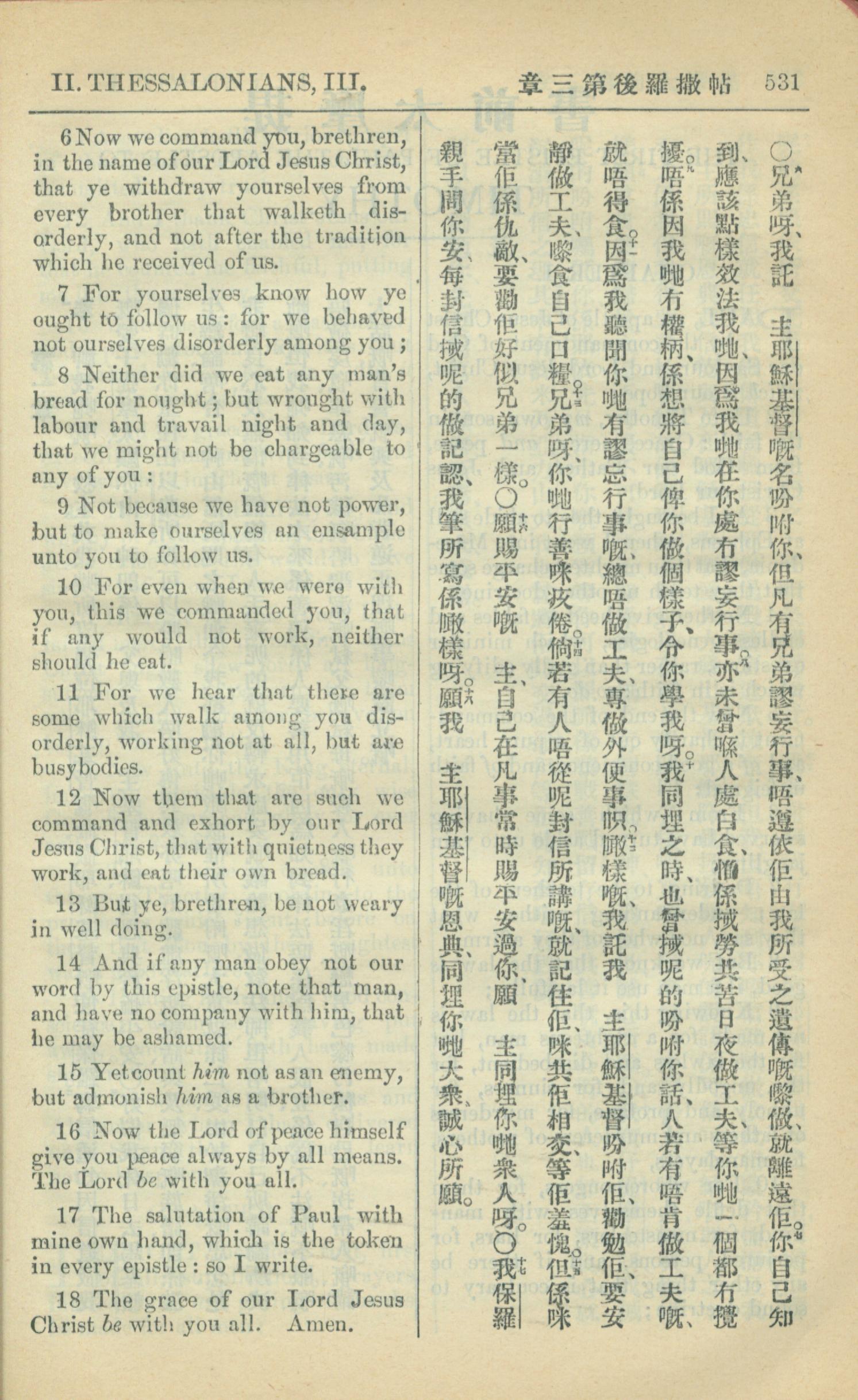 1909年中西字新約全書 帖撒羅尼迦後書 3 章 6 節到 3 章 18 節