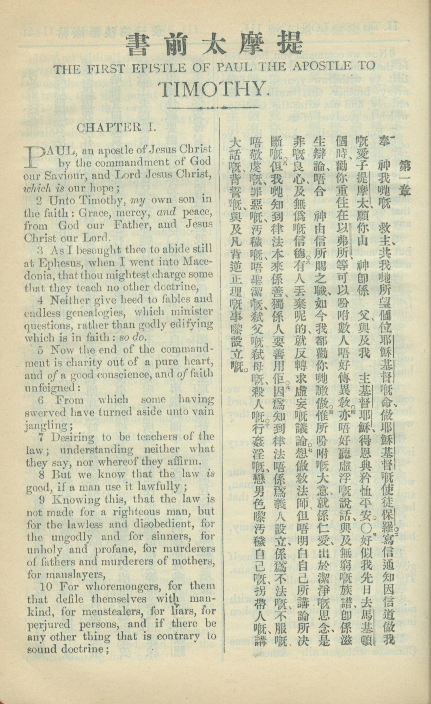 1909年中西字新約全書 提摩太前書 1 章 1 節到 1 章 10 節
