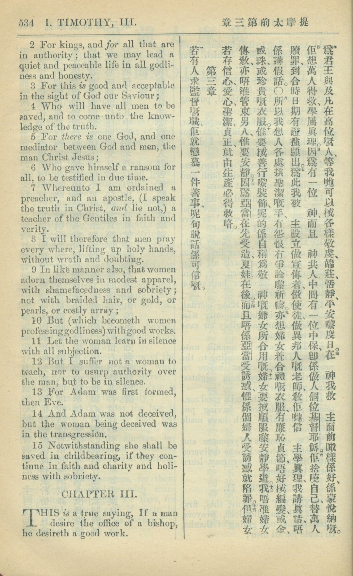 1909年中西字新約全書 提摩太前書 2 章 2 節到 3 章 1 節