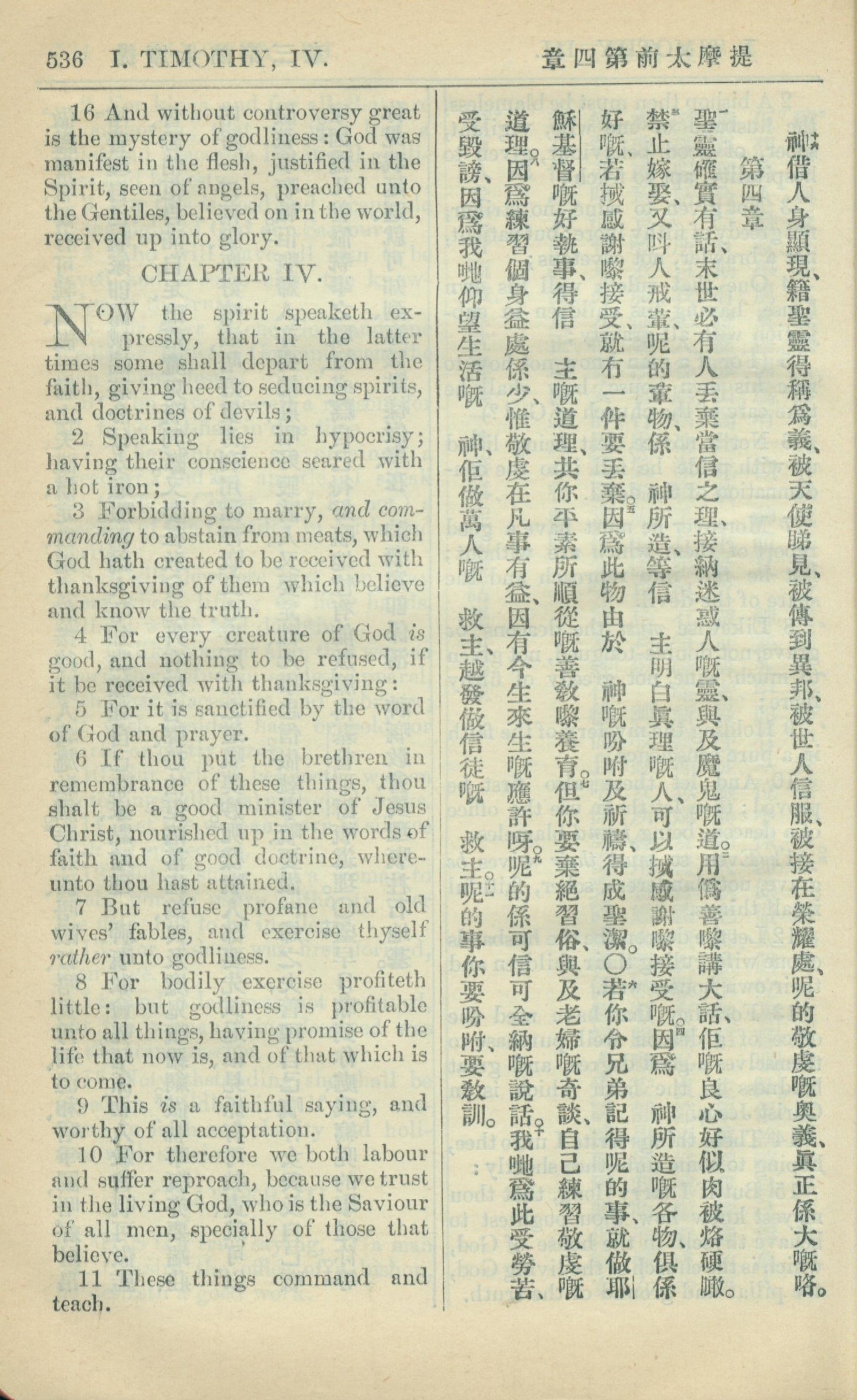 1909年中西字新約全書 提摩太前書 3 章 16 節到 4 章 11 節