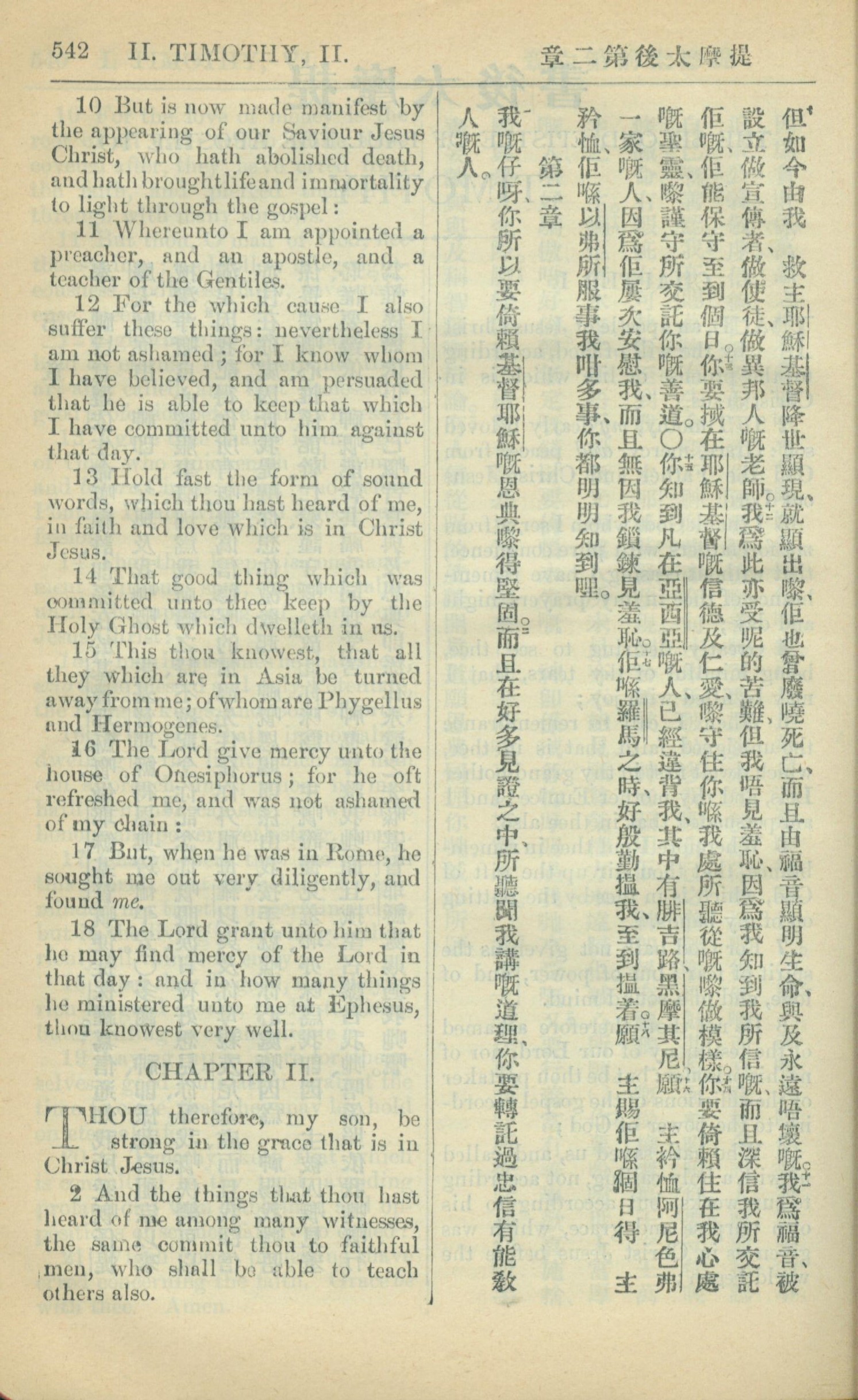 1909年中西字新約全書 提摩太後書 1 章 10 節到 2 章 2 節