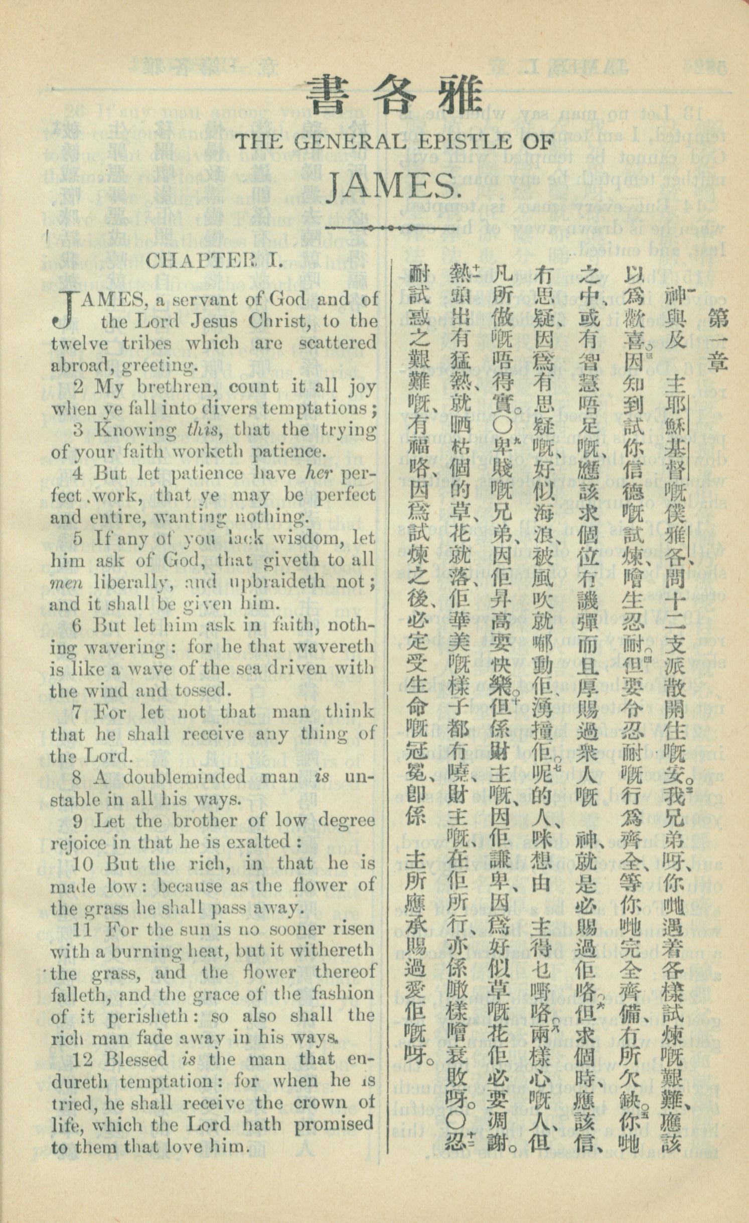 1909年中西字新約全書 雅各書 1 章 1 節到 1 章 12 節