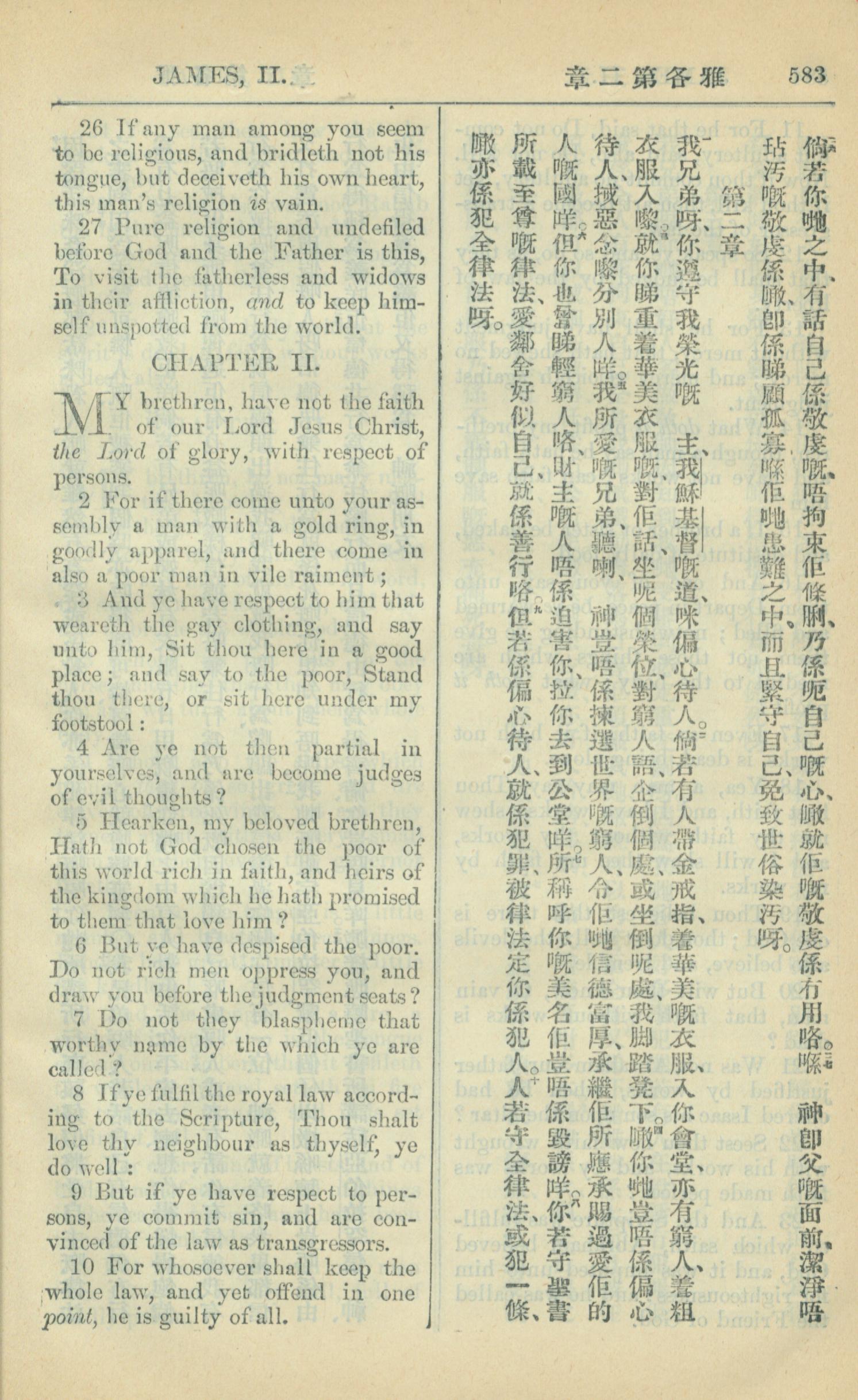 1909年中西字新約全書 雅各書 1 章 26 節到 2 章 10 節