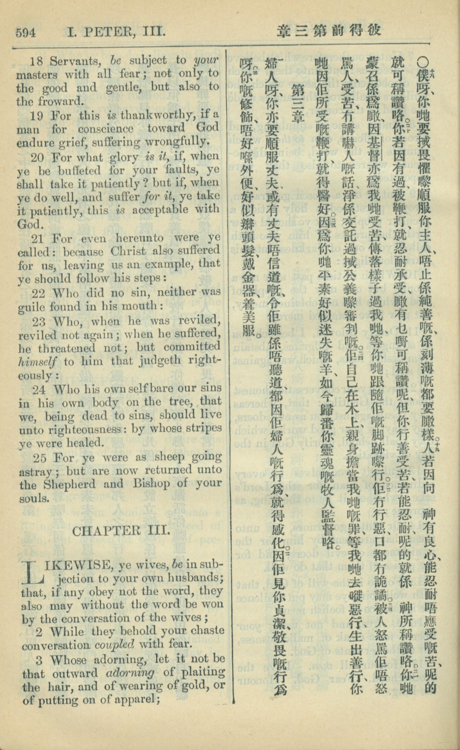 1909年中西字新約全書 彼得前書 2 章 18 節到 3 章 3 節