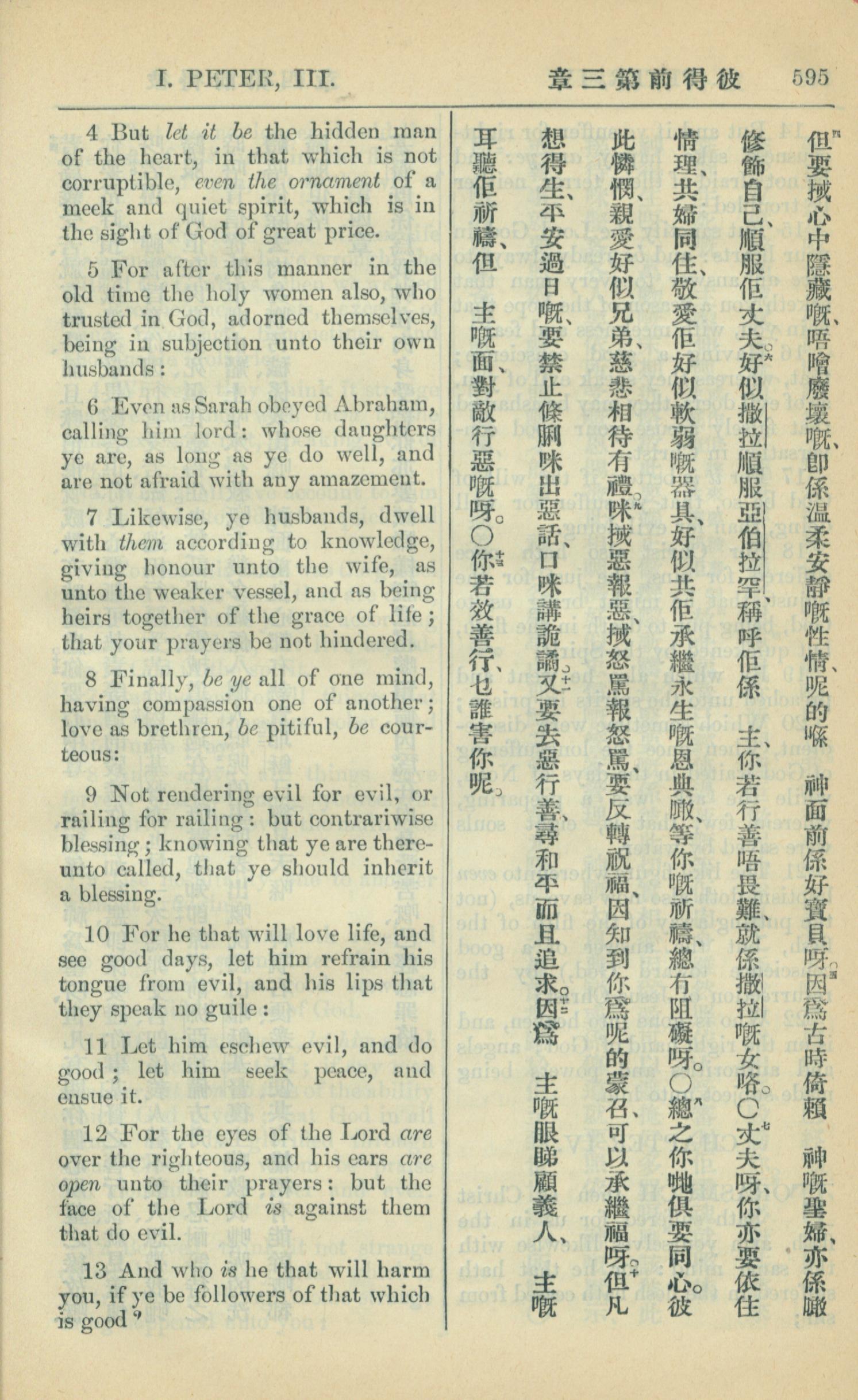 1909年中西字新約全書 彼得前書 3 章 4 節到 3 章 13 節