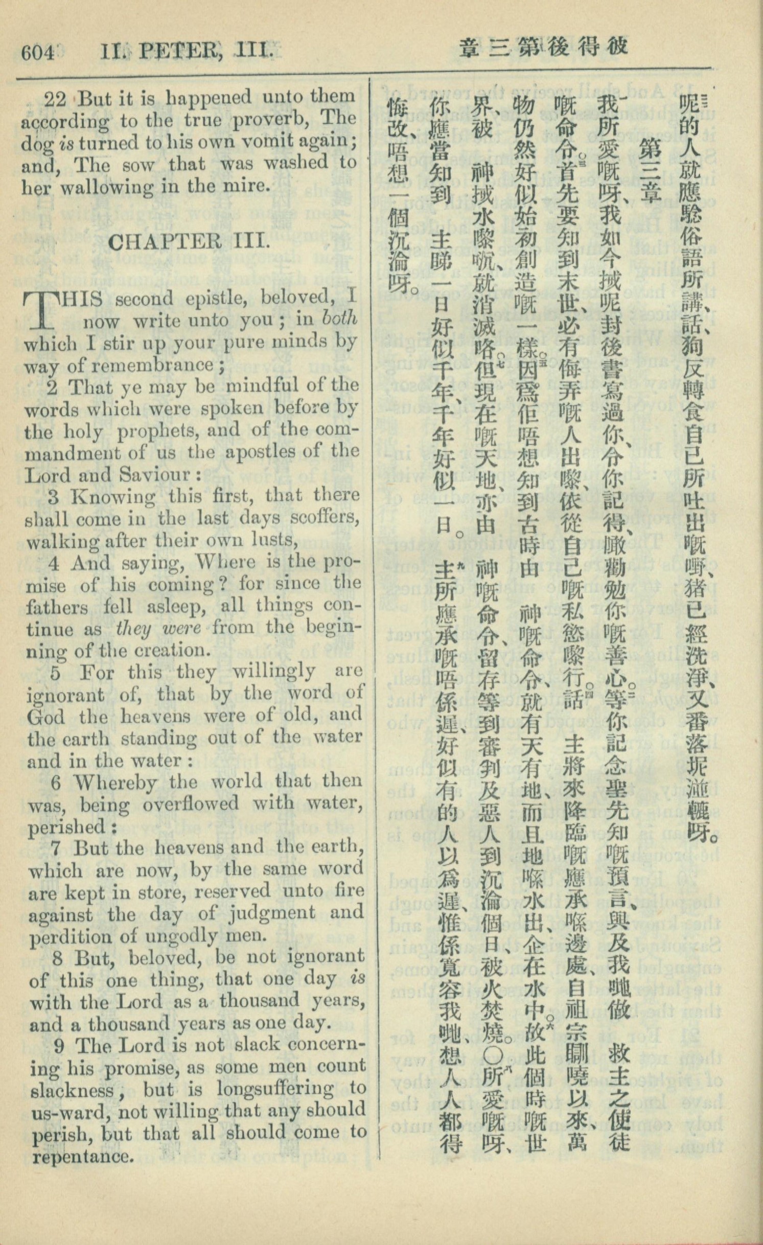 1909年中西字新約全書 彼得後書 2 章 22 節到 3 章 9 節