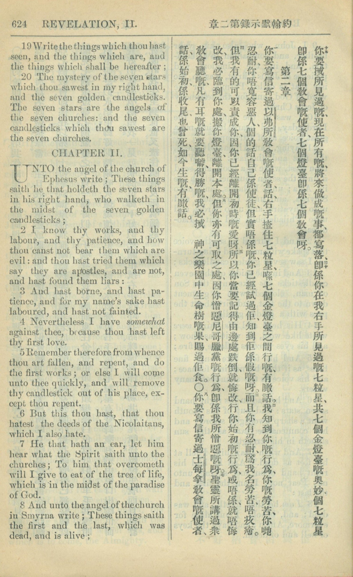 1909年中西字新約全書 啟示錄 1 章 19 節到 2 章 8 節