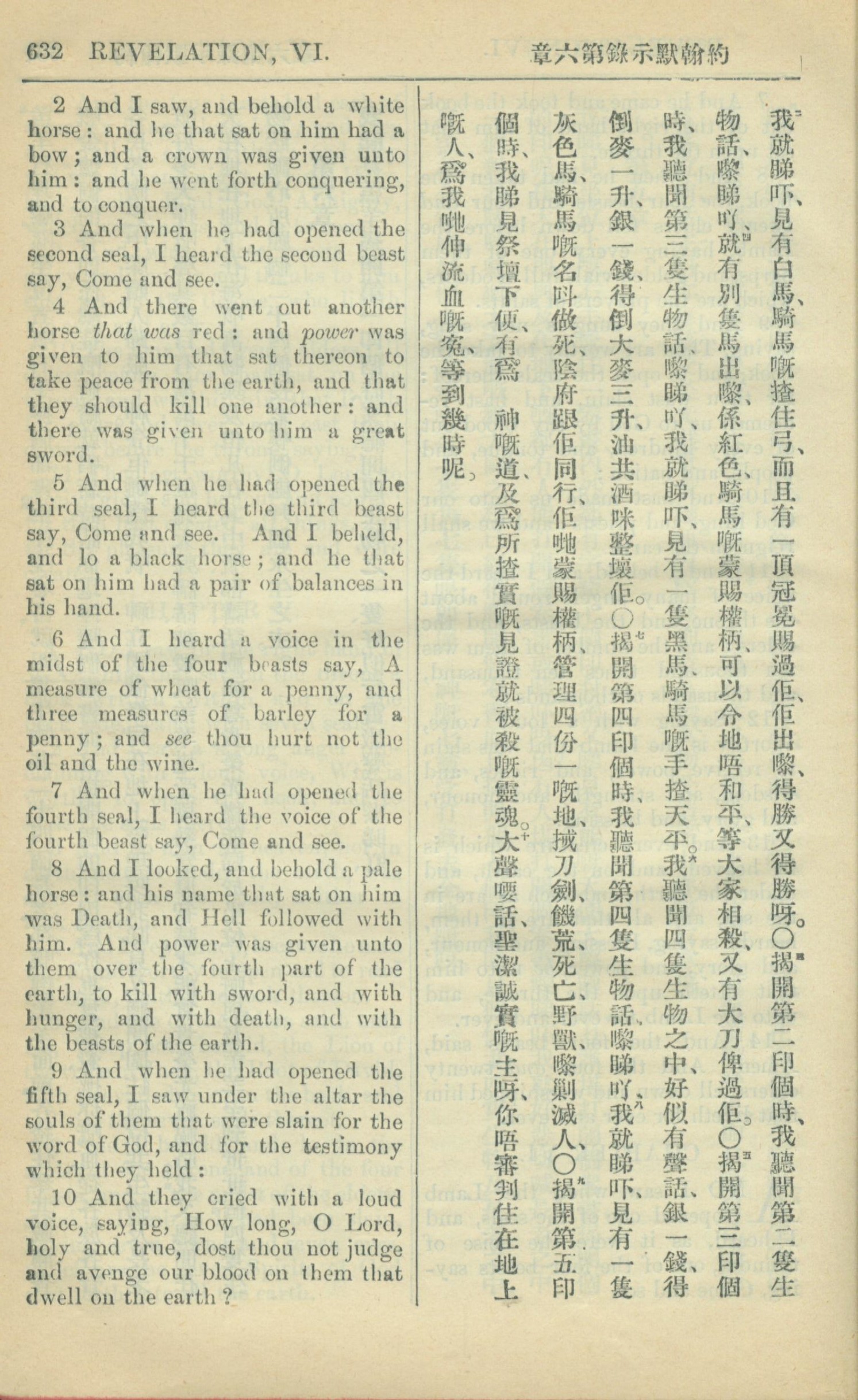 1909年中西字新約全書 啟示錄 6 章 2 節到 6 章 10 節