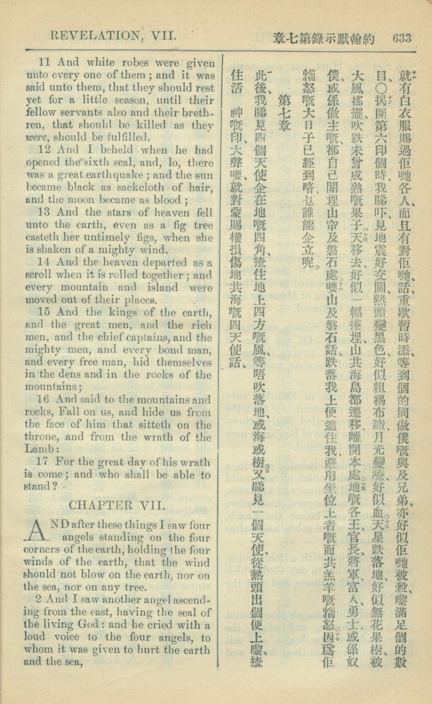 1909年中西字新約全書 啟示錄 6 章 11 節到 7 章 2 節