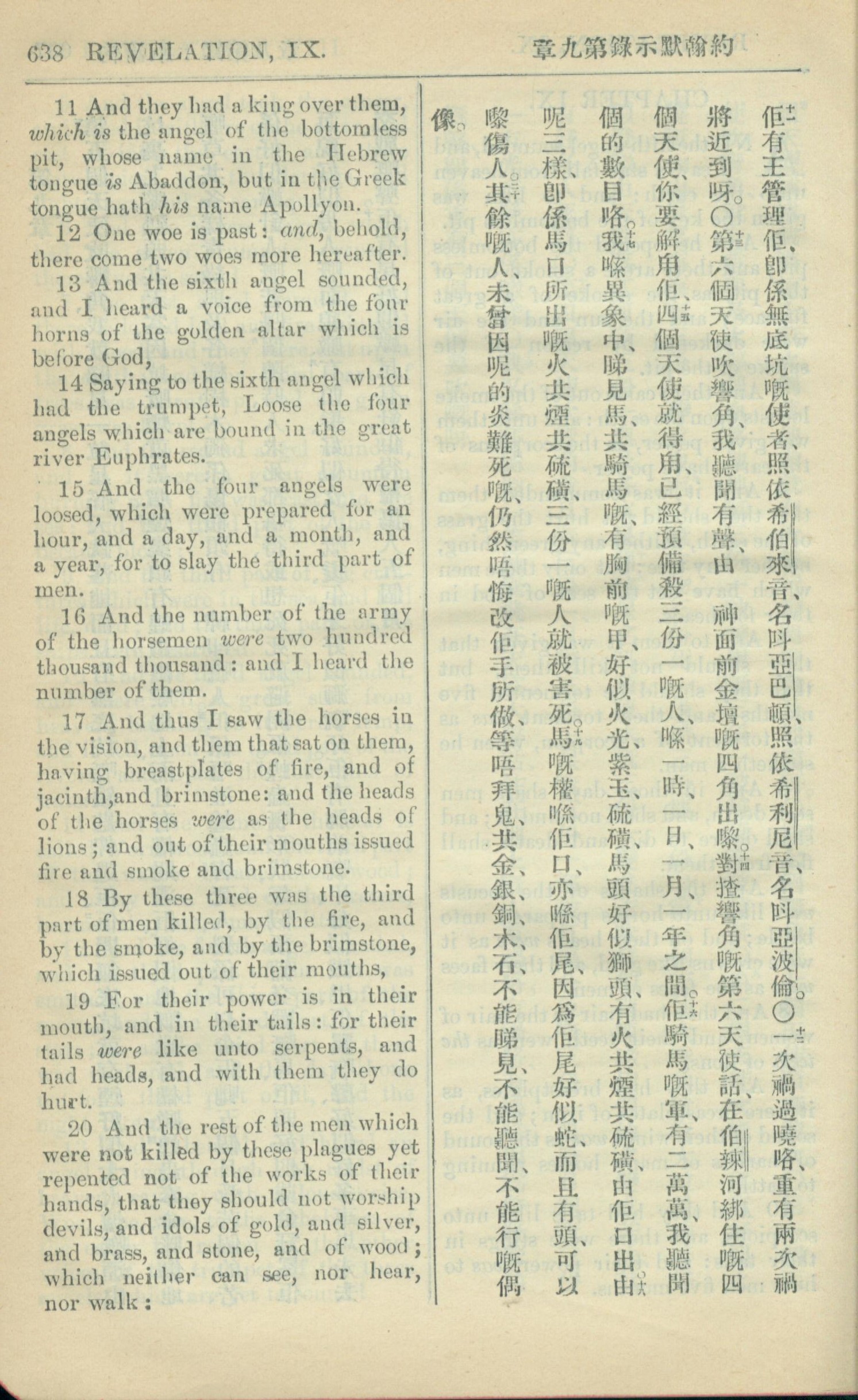 1909年中西字新約全書 啟示錄 9 章 11 節到 9 章 20 節