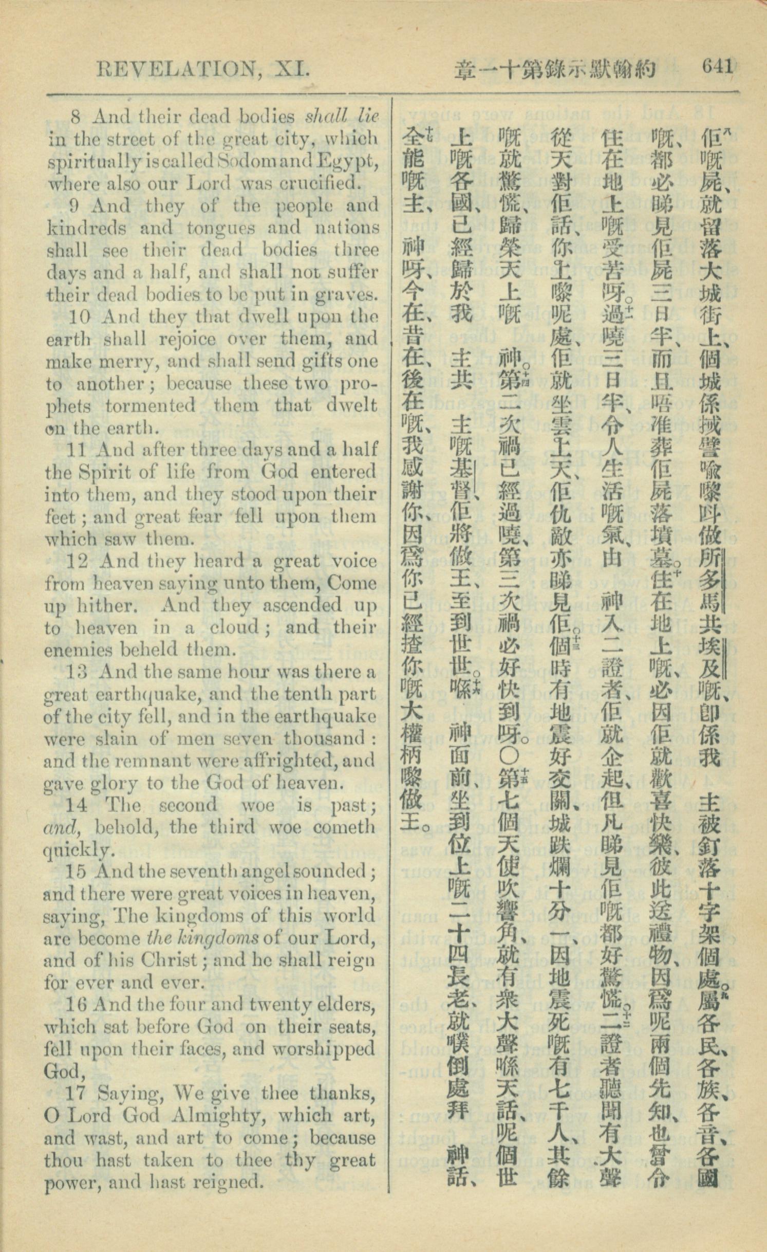 1909年中西字新約全書 啟示錄 11 章 8 節到 11 章 17 節